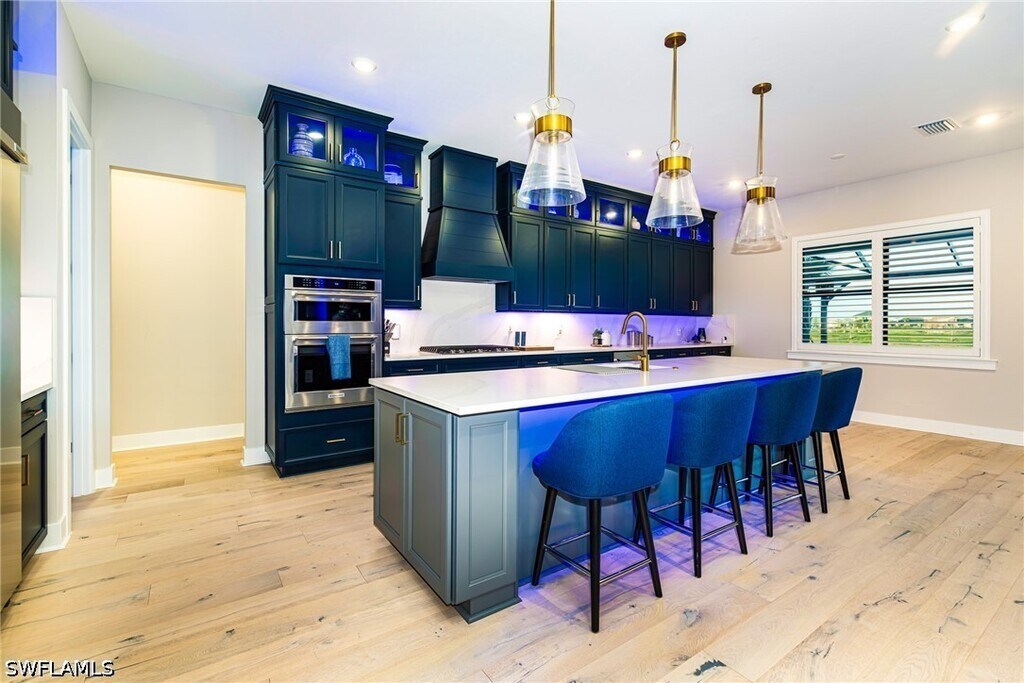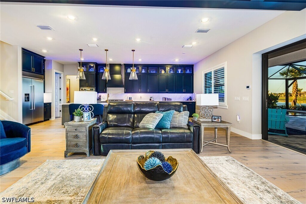 AVAILABLE FOR ANNUAL RENTAL,UNFURNISHED. Discover refined estate-style living in this exceptional Upton floor plan at Verdana Village,where more than 5,300 square feet,6 bedrooms,5.5 baths,and a 3-car garage come together on a private preserve homesite with a stunning lake view,an eastern-exposure lanai,and a peaceful,luxurious sense of retreat. Better than new construction,this home has been extensively upgraded and it shows in every detail,from plantation shutters,designer wall treatments,elevated millwork,tongue-and-groove accents,and beamed ceilings to statement lighting,custom mirrors,UV-protected windows,extended kitchen cabinetry,a walk-in pantry with an extra freezer,a custom coffee bar,custom closets,a beautifully upgraded rain shower,and engineered hardwood flooring throughout the home except in the wet areas,all thoughtfully designed for sophisticated everyday living and grand-scale entertaining. The first-floor owner’s suite offers a private sanctuary,while the second level provides exceptional space for family and guests with oversized bedrooms,walk-in closets,multiple en suite baths,a custom loft bar,and a private media room that creates the perfect setting for movie nights,game days,or relaxed evenings at home. The garage is equally impressive with epoxy flooring,extra storage,air conditioning,upgraded lighting,and an electric vehicle plug,blending function with the same level of finish found throughout the residence. Outdoors,lush privacy landscaping,elegant landscape lighting,functional exterior additions,custom paver areas,a fully appointed outdoor kitchen,and a spectacular custom Aragon pool valued at $250,000 create a true resort-at-home experience,all perfectly positioned to enjoy the stunning lake view and serene surroundings. Beyond the home itself,Verdana Village delivers an elevated gated lifestyle with multiple amenity centers designed to inspire connection,wellness,recreation,and everyday enjoyment. Residents enjoy an exceptional collection of indoor and outdoor offerings including pickleball,tennis,basketball,bocce,a state-of-the-art fitness center,movement studio,yoga lawn,resort-style pool and spa,poolside bar,playground,dog park,racquet pro shop,private party space,and beautifully designed gathering areas that encourage an active and social way of life. The community also offers a distinctive dining experience with inviting venues for everything from a casual café stop or ice cream break to craft cocktails and refined dining with friends and neighbors,making Verdana Village feel like a private club woven into everyday life. This is a rare opportunity to own a truly customized luxury home in one of Southwest Florida’s most exciting resort-style gated communities,where thoughtful design,extraordinary upgrades,and an unmatched amenity-rich lifestyle come together in one unforgettable property.