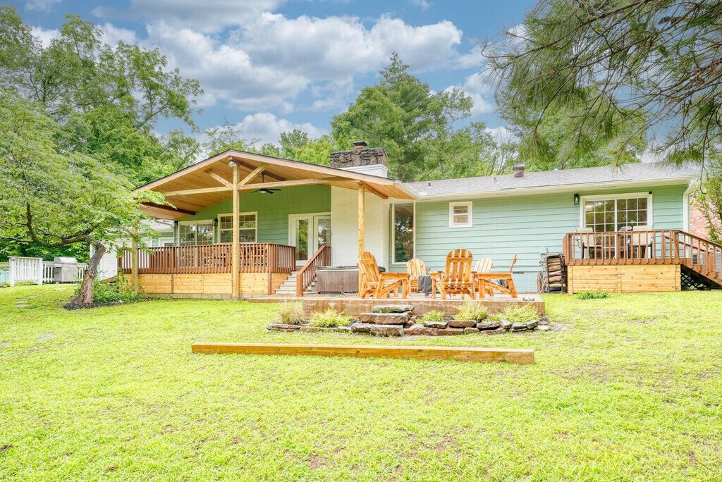 Feel at home in this lakeside retreat with direct access to Beaver Lake. This peaceful home offers all the comforts of a modern getaway. The fully stocked kitchen features stainless appliances, cookware, spices, a coffee maker, and wine glasses. The bright, open-concept living room includes a smart TV with streaming apps, high-speed Wi-Fi, and board games. Central A/C and heat keep you comfortable year-round, and a washer and dryer are provided. Enjoy complimentary kayaks with life jackets, a hot tub, a fire pit with seating, a covered deck with a gas grill and outdoor dining area, and a large grassy yard with hammocks and yard games. Ample driveway parking makes it easy to bring your own vehicle, and Uber and Lyft are available in the area. Located just 15 minutes from downtown Springdale, 30 minutes to the Walmart Home Office in Bentonville, and around 40 minutes to XNA (Northwest Arkansas National Airport), this home offers peaceful lakeside seclusion with easy access to shops, dining, and essentials. The nearest Walmart Neighborhood Market is 10 minutes away. No pets are allowed to maintain an allergen-free environment. Smoking is permitted outdoors with proper disposal. Quiet hours are from 9 PM to 8 AM. Self check-in is available via smart lock. [SI]