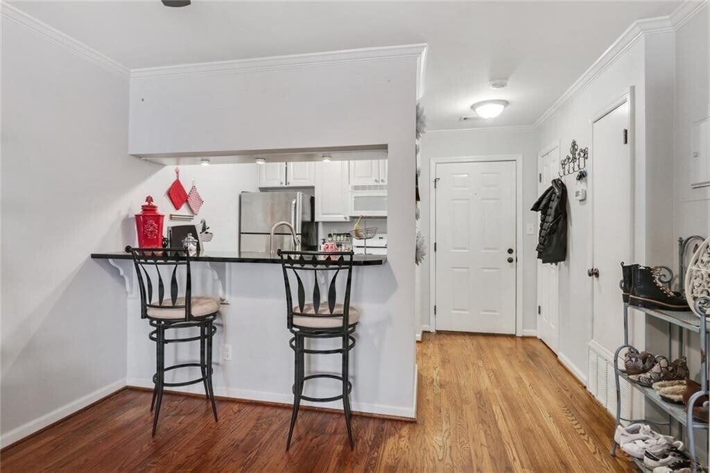 Live just half a block from the 14th Street entrance to Piedmont Park in this stylish 1-bedroom,1-bath condo. Designed for comfort and convenience,the home features hardwood floors throughout,a modern kitchen with black granite countertops and glass-front cabinets,plus a spacious bathroom with a porcelain console sink and stone tile. A generous walk-in closet,and in-unit laundry make city living effortless. Enjoy the security of assigned,covered parking in a gated garage and the benefit of a strong HOA with an affordable monthly fee that covers exceptional amenities. Perfectly situated just ½ mile to Arts Center MARTA,Woodruff Arts Center,and the High Museum—you’ll be at the center of culture,dining,and entertainment. This is the perfect blend of vibrant city living and everyday ease!
