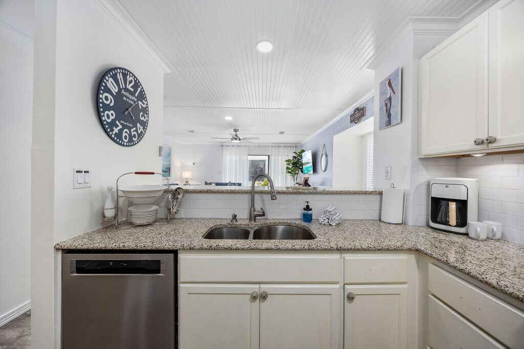 Escape to Sea Therapy, a 3-level townhouse boasting 3 bedrooms and 2.5 baths, a private patio and deck, and ample seating for up to 8 people. Located just 2000 yards from the beach, with parking conveniently 15 feet from the front door, this 1750 sq. ft. getaway is designed for comfort and ease. Step inside this beautifully updated end unit townhouse to find a fully equipped kitchen with modern stainless appliances, granite countertops, and a full-sized washer and dryer. The open layout includes a dining table with place settings for 6 and 3 additional bar stools, adjacent to a spacious living room with a full-sized sofa, love seat, and club chair. The private patio features a new sectional sofa, outdoor dining table, and a movable fence for pets. Upstairs, the second floor offers 2 spacious bedrooms and a large shared bath, while the third floor hosts a primary suite with a private covered deck and en suite bath. Linens for all beds, bath towels, hand towels, and washcloths are provided, along with paper towels, toilet paper, hand and dish soaps, and laundry and dish pods, all included with the cleaning fee. Optional rentable backpack-style beach chairs are available through the Guest Portal. A $125 per dog additional cleaning fee applies, with breed pre-approval required. Ocean Dunes 1 is located in the heart of Northern Myrtle Beach at the intersection of 75th Avenue North and Ocean Blvd. Within walking distance, you'll find several restaurants, a fun arcade, and the beach. The community pool is just 50 feet from the townhouse, and there's a Starbucks nearby. Bike lanes along Ocean Blvd make it easy to explore the area by bicycle. Check-in is from 4:00-10:00 PM and check-out is at 10:00 AM. The property is non-smoking and parties are not permitted. By state law, occupancy may not exceed 7, including infants and children. Quiet hours are from 11:00 PM to 7:00 AM. A minimum age requirement of 25 applies for booking. [SI]