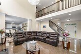 Spacious 5 BEDROOM, 4 FULL BATH statement home with stunning finishes! Designed for grand living, this home features elegant granite flooring and bright, flowing spaces. The gourmet kitchen is a chef's dream: granite counters, stainless steel appliances, large island, and walk-in pantry, all open to the dramatic 2-story family room with fireplace. Main level offers a guest bedroom, full bath, and laundry room. Upstairs, the luxurious owner's retreat boasts a sitting area and a spa-like bath with jetted tub, separate shower, and dual vanities. Formal living and dining rooms add essential flex space. Space and luxury defined! UNFURNISHED