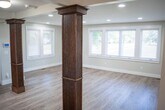 Fully modernized 2-story home with 4 bedrooms,2.5 bathrooms,and 1,995 sq. ft. of living space,plus a 350 sq. ft. basement,featuring a 220 sq. ft. backyard patio and detached 2-car garage (637 sq. ft.). Built in 1848 and completely remodeled in 2022,it retains original hand-hewn beams while updating plumbing,electrical,HVAC,insulation,and more. Exterior highlights include white vinyl siding,insulated casement windows,and a 25-ft-wide concrete front porch. Inside,the foyer opens to a living room with dark-stained wood columns,open stairway,luxury vinyl plank flooring,and recessed lighting; the sunroom leads to the backyard patio. Kitchen features an 8-ft granite island,dark soft-close cabinets,under-cabinet lighting,and stainless steel appliances. Master suite includes ceiling fan,shiplap closet doors,and private bath,while three additional bedrooms share a full bath with laundry. Basement houses furnace,AC,and water heater. Blocks from Downtown Ypsilanti.
