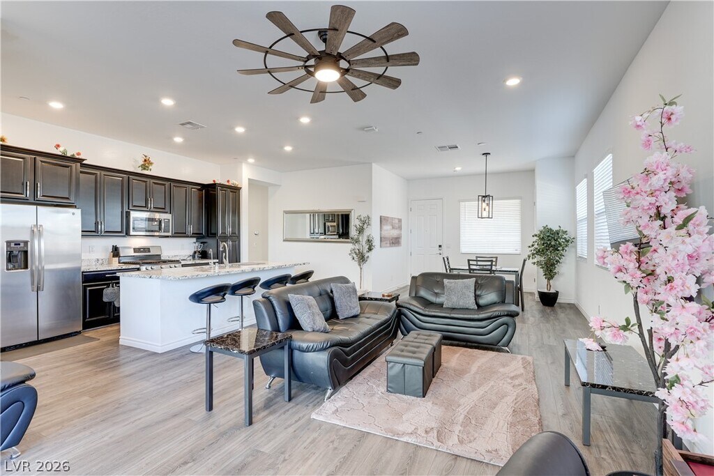 Fully Furnished Single-Story in Guard-Gated 55+ Heritage at Cadence! Welcome to this rare single-story Juniper floorplan located in the guard-gated 55+ community of Heritage at Cadence. This fully furnished home features a spacious open-concept layout and a large chef’s kitchen with granite countertops, an expansive island, reverse osmosis system, and espresso cabinetry with roll-out drawers. Upgraded wood laminate flooring runs through the main living and kitchen areas. The primary suite includes a walk-in shower and dual sinks, while the fully enclosed backyard offers brick pavers and a covered patio—perfect for relaxing outdoors. The 2-car garage includes plenty of storage cabinets, plus a Ring doorbell and smart thermostat add modern convenience. Enjoy resort-style living with an incredible clubhouse featuring a learning kitchen, ballroom, café, gym, business center, craft rooms, pickleball, tennis courts, pools, spa, dog park, and more. This is living at its finest!