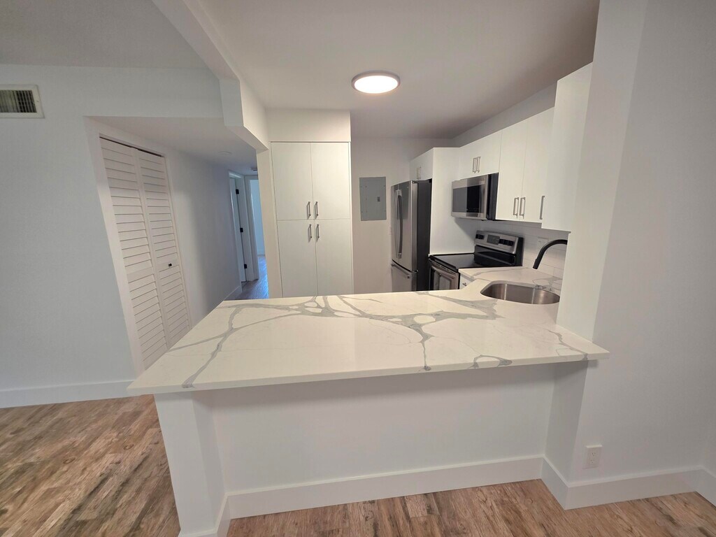 Gorgeous 2-bedroom,2-bath condominium for rent! Fully renovated with a modern,stylish design. Enjoy a beautiful kitchen featuring quartz countertops,wood-look tile flooring throughout,and brand-new appliances. Located in a well-maintained community with a sparkling pool and BBQ area,perfect for relaxing afternoons outdoors. Conveniently close to restaurants,shopping,beautiful beaches,and the Turnpike for easy commuting. Don't miss this move-in ready home! MLS ID B26015005