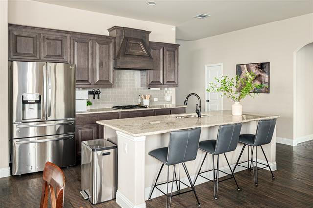 Step into luxury with this nearly new custom-built masterpiece by Astoria Homes, where timeless elegance meets modern comfort. From the moment you enter through the impressive 8-foot front door, you’ll be welcomed by rich, hand-scraped oak hardwood floors that flow throughout the entry, kitchen, nook, study, and family room. The chef’s kitchen is designed to impress with solid maple cabinetry, sleek quartz countertops, a double oven with built-in microwave, custom wood vent hood, and a beautifully upgraded backsplash. It's the perfect space to create and gather. The spacious family room centers around a striking stone wood-burning fireplace, creating a cozy yet sophisticated atmosphere ideal for relaxing or entertaining. Upstairs, a generous game room offers the perfect retreat for fun, hobbies, or additional lounge space. This home stands apart with its thoughtful upgrades, extended covered patio, and true custom finishes—far beyond what you’ll find in a typical production build. Don’t miss your opportunity to own this high-end haven. Schedule your private showing today and experience the luxury for yourself! No MUD or PID!