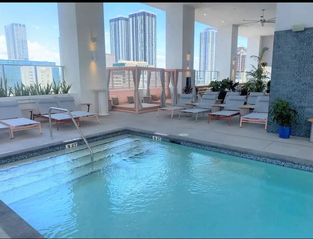 Feel at home in this modern two-bedroom, one-and-a-half-bathroom apartment located on the 22nd floor of a smart living concept building in Downtown Miami. Enjoy a stylish living and dining area, a fully equipped kitchen, and a bright living room with a balcony offering city views. The apartment is within walking distance of Bayfront Park and close to vibrant neighborhoods like Brickell, South Beach, and Ocean Drive. This condo offers hotel-like amenities, including a pool deck, pool bar, fitness center, work hubs, and a restaurant within the complex. Inside, the first bedroom features a queen-size bed, while the second bedroom offers two wall pull-out beds or workspace options. A full-size pull-out bed is available in the living room. The apartment is equipped with cable and Wi-Fi, perfect for working from home or vacationing in style. Housekeeping services are available for $100 per visit, which includes changing towels, dishwashing, sweeping, mopping, cleaning, dusting, bathroom disinfecting, and making the beds. Public parking is available across the street for an hourly fee. Located in the heart of Downtown Miami, this apartment is within close proximity to cultural and lively neighborhoods. Enjoy nearby attractions such as Bayfront Park, Bayside Marketplace, and the Port of Miami. Restaurants like Pollos y Jarras and Cafe Bastille are just a short walk away. Miami International Airport and Fort Lauderdale-Hollywood International Airport are conveniently accessible. The building features a modern integrated system allowing key-free access to the apartment and amenities via an app or virtual key. The condo is completely smoke-free with a $200 fine for violations. No parties or pets are allowed. High noise levels after hours may lead to issues with security staff. The apartment is remote work-friendly with Wi-Fi and a comfortable living space that can be adapted for work needs. A laptop computer is not included. [SI]