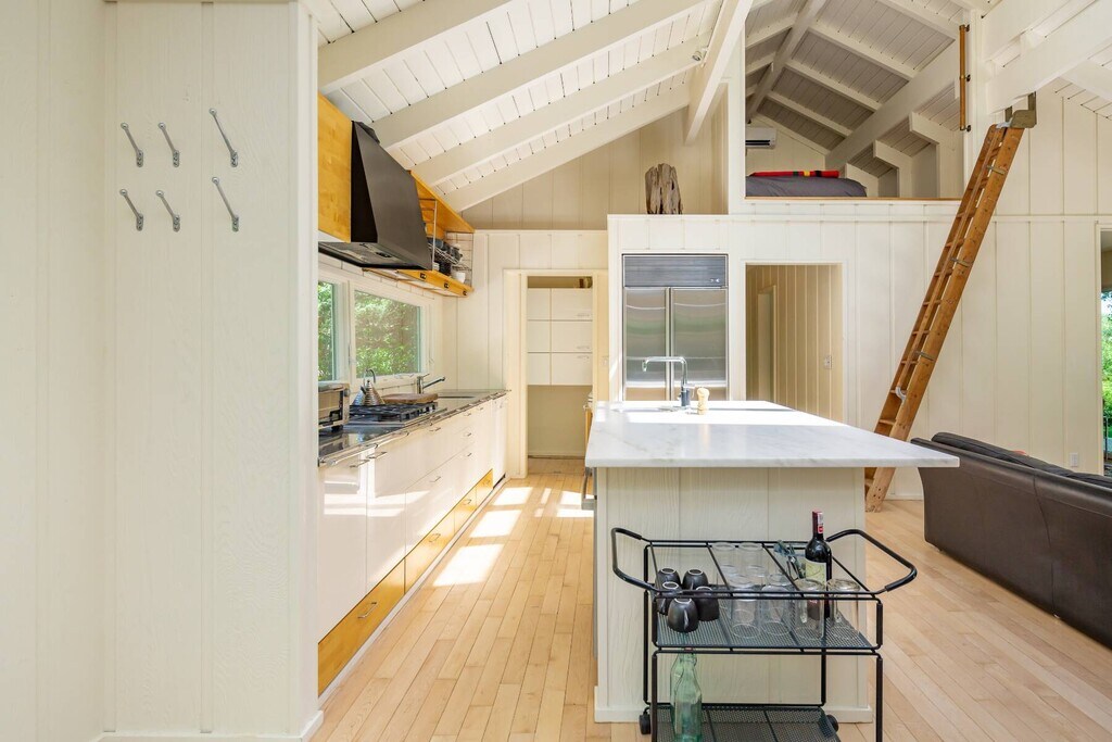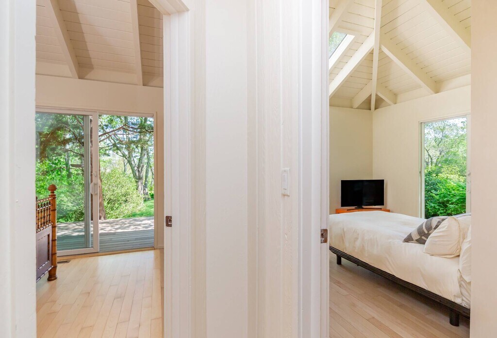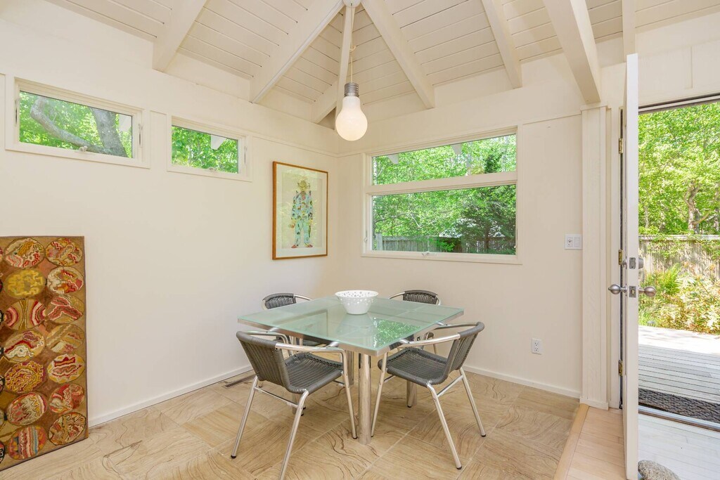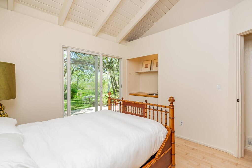 A modern retreat, cradled in a park-like oasis, where privacy and style intertwine in effortless harmony. Originally crafted in 1966 and thoughtfully renovated, this hidden gem awaits those who seek beauty and tranquility. Nestled along a storybook street and moments from the breathtaking shores of Louse Point, the home invites nature to dance within. Wide wraparound decking blurs the line between indoors and out, while golden light spills through every space, illuminating vaulted cottage-style ceilings that seem to breathe with the breeze. With two serene bedrooms, two spa-like baths, and a whimsical loft accessed by a library-style ladder, the home is both intimate and enchanting. Meandering pathways wind through the lush grounds, leading to a glistening pond, secluded seating nooks, and a fire pit encircled by Adirondack chairs-each moment here designed for quiet wonder. An automated driveway gate ensures a sanctuary of privacy. A place where time slows, light lingers, and every corner whispers serenity. Simply perfect. [[Rental Registration # 23-860]] EH RR #: 23-860 Rental Terms: July: $31,000 Memorial Day - Labor Day: $72,500 August - Labor Day: $33,500
