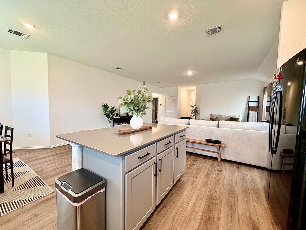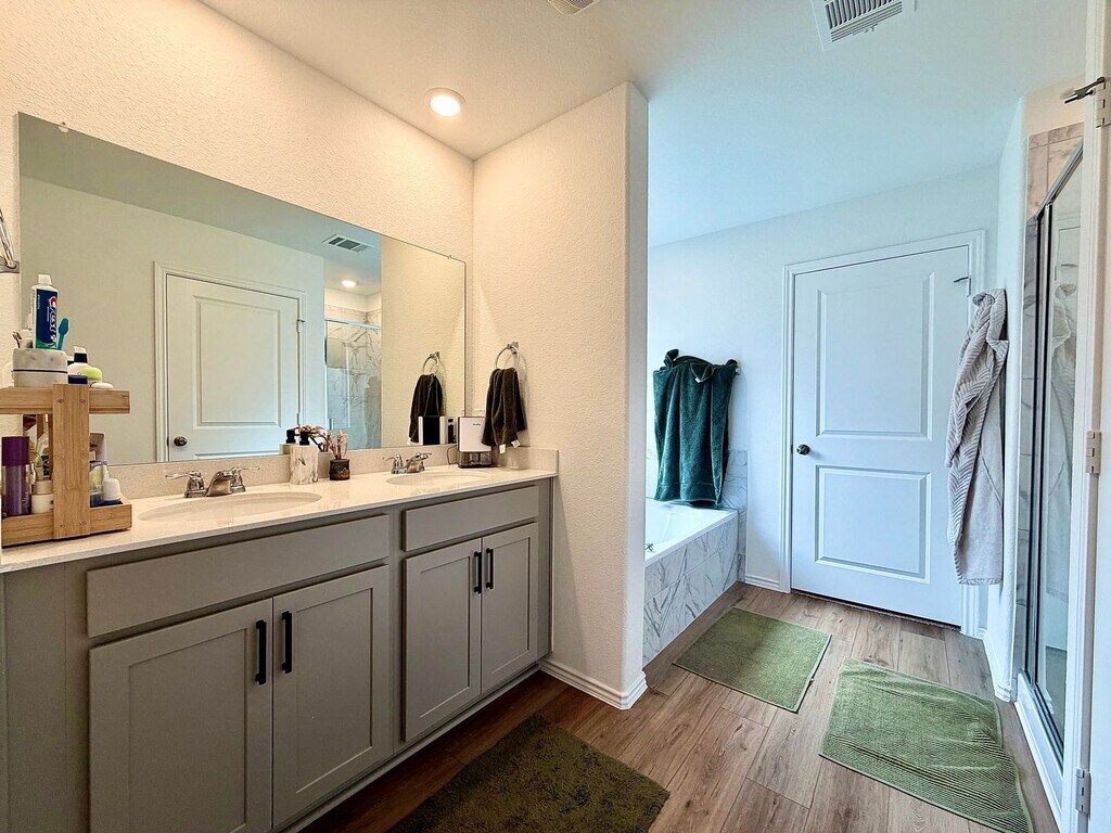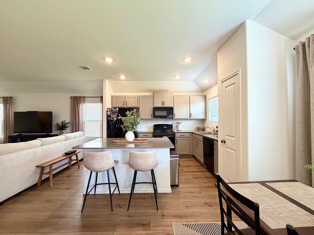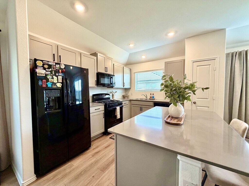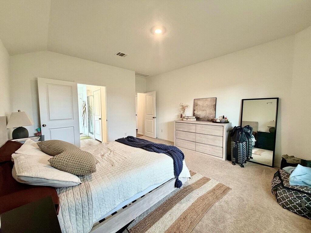 This stunning, single-story home located in the new Whisper subdivision in San Marcos, TX boasts 3 spacious bedrooms and 2 full bathrooms, with nearly 1650 sqft of living space. The open floor plan is accentuated by vinyl wood floors and recessed lighting, creating a bright and inviting atmosphere throughout the home. The kitchen is open to the dining and large living area and includes solid surface countertops, refrigerator with ice maker, a gas range, and a built-in microwave. The master suite is separate from the secondary bedrooms and features a dream worthy walk-in closet double vanities, a soaking tub and a stand up shower. The home also includes a two-car garage and a fully fenced backyard, perfect for outdoor activities. What sets this home apart is its commitment to energy efficiency, with solar panels and other energy-efficient features. This home is not just a place to live, it's a lifestyle. Come and experience it for yourself! This property is occupied. Please allow 24 hours for showings. You may schedule a showing through your real estate agent or contact our office directly. For additional property details, our contact information or to apply for this rental, please visit our website at: Please know, applications will only be accepted from our website.