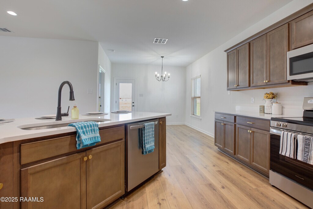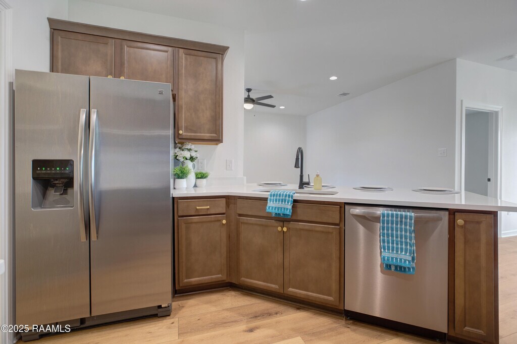 Beautiful new home with an open floor plan with 3 bedrooms & 2 full bathrooms. Loads of natural light and an efficient home with low energy bills! This home includes quartz counters, vinyl plank flooring throughout & blinds. Special features include walk-in pantry, breakfast bar, walk-in closet primary suite, Wi-Fi thermostat, structured wiring panel box, tankless gas water heater, covered patio, fully sodded yard with landscaping. Minutes from Youngsville Sports Complex and only 8 minutes from Rouses, this is a great location with very easy access to Hwy 90. No Carpet! Stainless appliances. Washer/dryer provided with approved application.