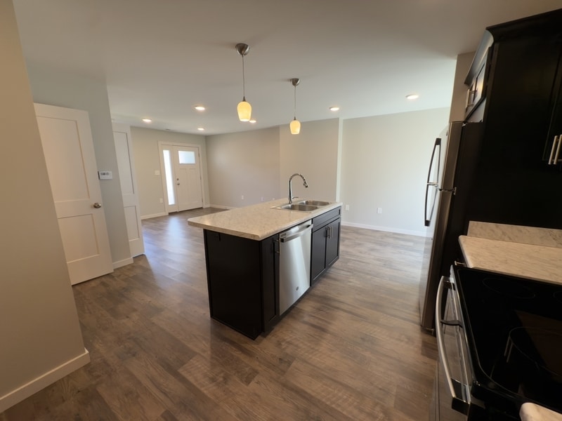 Lease by Oct 31, 2025 and save $500. New approved leases receive a $500 rent credit applied at move in. Apply now! This 2 bedroom and 1.5 bathroom home showcases an open concept living area, with a fully equipped kitchen that features a pantry and stainless steel appliances. Throughout the home, the floor is laid with luxury vinyl wood plank flooring. The home has central heating and air conditioning, a washer and dryer, ample closet space and storage, and window blinds. You will access the home through your own private entrance, and have your own private patio with an outdoor storage shed. The location of the property is close to town and provides easy access to all local highways. This apartment is a pet and smoke free apartment. The landlord is responsible for trash services and lawn care, while the tenant is responsible for all other utilities.