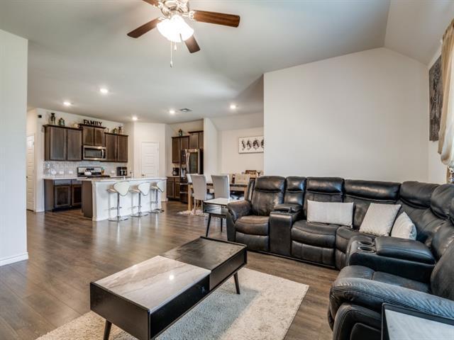 This beautiful 4-bedroom, 2-bath home for rent features an open floor plan designed for modern living. The spacious kitchen offers a gas stove and plenty of room to cook and entertain, seamlessly flowing into the dining and living areas. The home also includes a tankless water heater for energy efficiency and continuous hot water. Trailstone residents enjoy access to a community pool, playground, green spaces, and neighborhood social events. Multiple neighborhood ponds provide a peaceful setting for catch-and-release fishing and outdoor enjoyment. The neighborhood is conveniently located near I-30 and TX-66 for easy commuting, and the elementary school is conveniently located at front of the community.