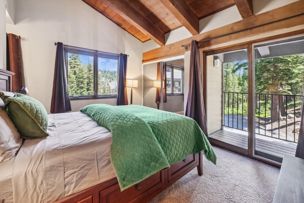 The condo is at the top of Alpine Meadows Road in the Alpine Meadows Condo HOA. It is walking distance to the Alpine Meadows parking lot and serviced by the Mountaineer Shuttle if you would prefer a free pick up and drop off. There is a 1-car garage with access through the building up to the second floor, where you'll find the condo. On the main level of the condo, you'll find the kitchen, dining area, living room, two bedrooms, en suite full bathroom, and second full bath with walk-in shower, and laundry. Upstairs is the loft, or the third sleeping area with a private full bathroom. The living room has a pellet stove for those cold winter nights and can save the day in the event of a power outage, as we all know can happen living in the mountains. The kitchen has everything you need to cook a nice meal at home and the dining room table comfortably sits 6. Bedroom #1: Downstairs King w/ ensuite bathroom. Bedroom #2: Downstairs King w/ slider to balcony. Bedroom #3: Loft w/ two full size beds and private bathroom. LEASE DETAILS - Available 12/1 - 4/30 with flexibility on exact start and end dates. - Rent $4,700/month - All utilities are included except electricity. Tenant pays monthly cost of electricity through AppFolio portal and $1,500 deposit as reserve. - Dog friendly with $500/pet deposit. Max two dogs. - Owner will stock pellets for the stove, but tenant will be responsible to pay for bags used at lease end. Please inquire for more information.
