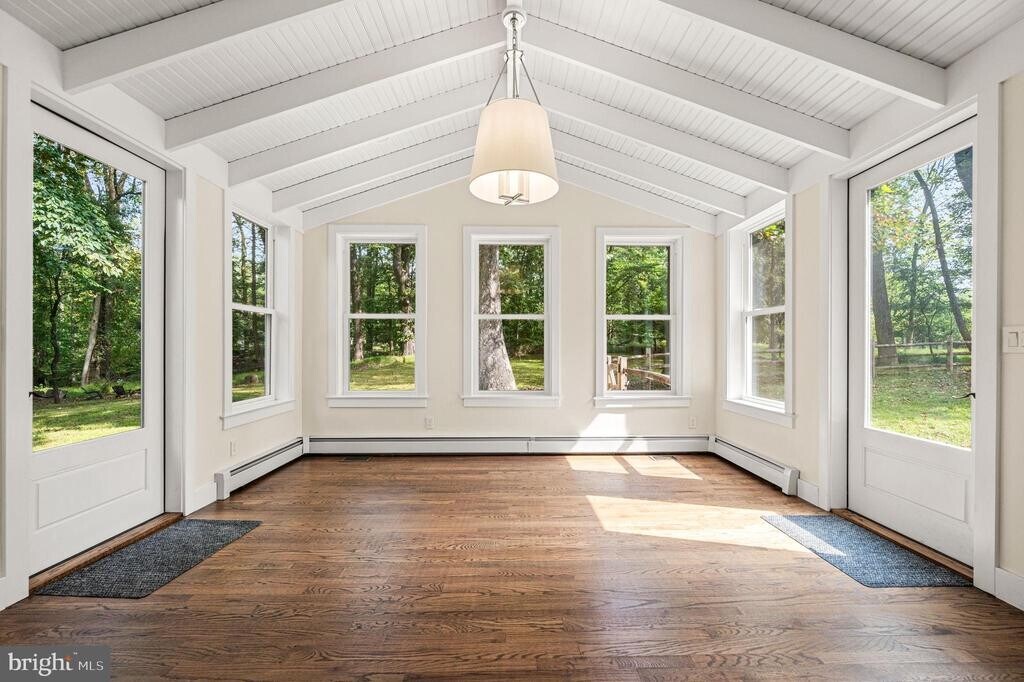 Rare opportunity for privacy, space, and style in Charlestown Township / Great Valley SD. Recently renovated 4BR/2.5BA home on 2+ private wooded acres with approx 3,040 SF and a 2-CAR garage. Interior updates include refinished HARDWOODS on both levels, designer-neutral paint, updated lighting, and newly insulated windows/doors/siding for energy efficiency. Smart-home dual-zone thermostats enhance comfort. A custom mahogany entry door with BALDWIN hardware opens to a slate-floor foyer, a 21-ft living room with abundant natural light, and a welcoming family room with exposed beams, built-ins, and a whitewashed WOOD-BURNING FIREPLACE, a standout for chilly nights. The renovated kitchen offers custom solid CHERRY cabinetry, GRANITE countertops, a center island, and new STAINLESS appliances including SUB-ZERO refrigerator and BOSCH cooktop/dishwasher. Adjacent four-season sunroom (14’ x 13.5’) with vaulted ceiling, full HVAC, and three walls of windows overlooks the serene backyard. Formal dining with wainscoting. Main level laundry, powder room, MUDROOM, and interior access to garage. Generator-ready: dedicated inlet in the garage. Upstairs features 4 large, generous sized bedrooms, including a primary with walk-in closet and elegant updated MARBLE ensuite. Unfinished basement provides excellent storage/workout/workshop options. Quick commute to Vanguard, Saint-Gobain, Vishay and other corporate centers. Convenient access to PA Turnpike (I-76), Route 202, Route 30, and SEPTA Malvern Regional Rail. Outdoor living features two brick patios and a split-rail fenced area. Lease this Luxury Malvern Rental—a polished retreat with modern systems.