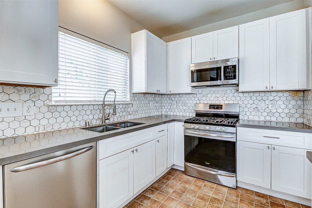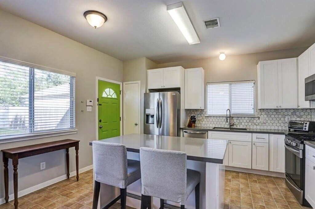 Check out this charming & bright home perfect for family living! This 4-bedroom,2.5-bath home is filled with natural light and features an inviting,open layout. The primary suite,located downstairs,offers a walk-in shower and relaxing garden tub—your private escape. The kitchen boasts quartz countertops,a sleek tile backsplash,soft-close shaker cabinets,and matching stainless steel appliances. A spacious island makes it perfect for casual dining or entertaining. Upstairs,you'll find the secondary bedrooms,while the open floor plan ensures a welcoming atmosphere. Outside,the large,fully fenced backyard with a brick paver patio is ideal for pets,kids,and gatherings. Located on a peaceful cul-de-sac,the detached 2-car garage adds convenience and privacy. Bonus features include storm doors on both the front and back,as well as a lovely courtyard entry. And for your peace of mind,this property has never flooded. MLS# 37909490