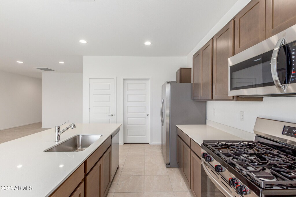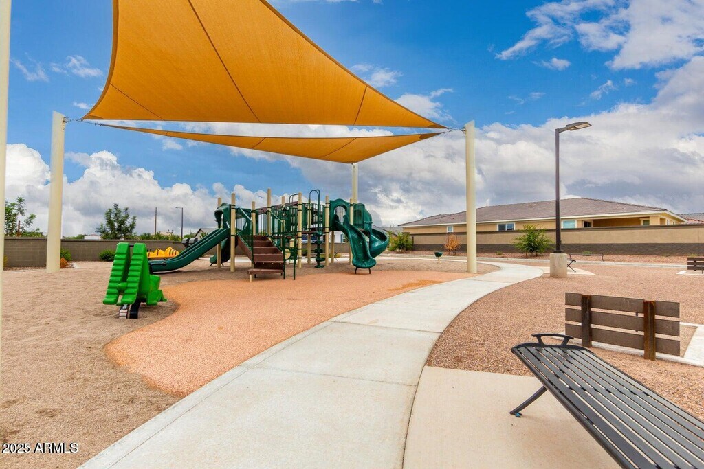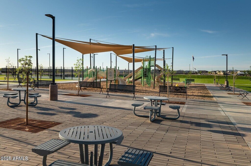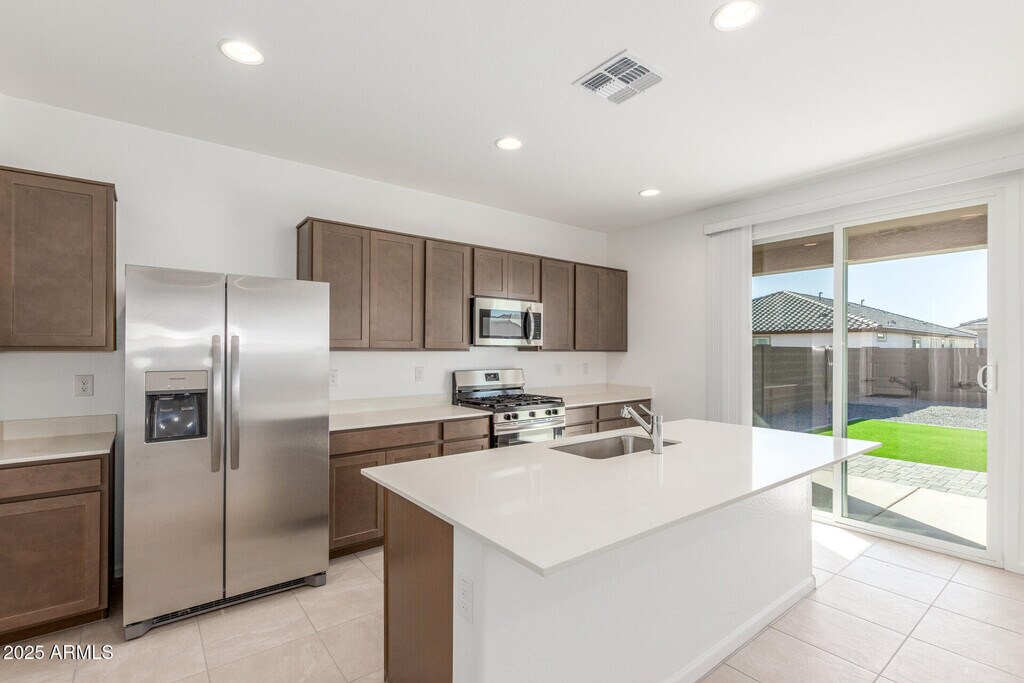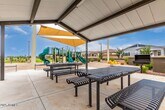 This beautiful brand-new home,the Colette plan,is perfectly located near all that Queen Creek has to offerjust minutes from the new Costco,Schnepf Farms,Queen Creek Marketplace,and the Olive Mill. Nestled in the amenity-rich Madera community,residents enjoy a pool,playground,pickleball,and bocce ball courts for endless fun and relaxation. Inside,you'll find luxury 18x18 tile flooring,Maple Linen cabinets,and sleek Quartz countertops. The large open great room is perfect for entertaining,with a covered porch and patio extending your living space outdoors. Fridge,washer & dryer included.