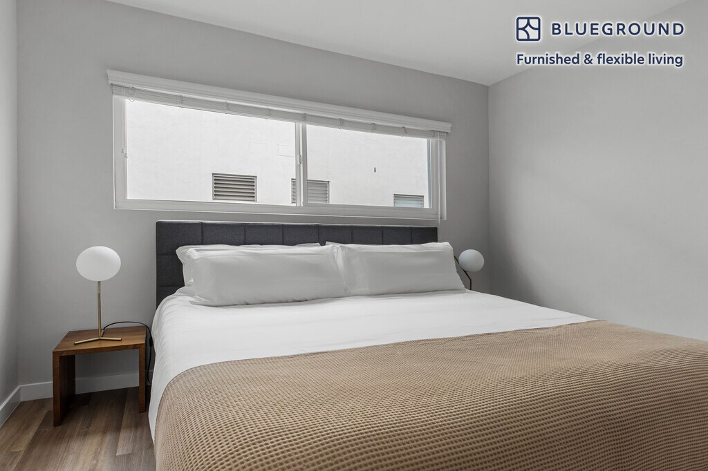 Feel at home wherever you choose to live with Blueground. You’ll love this spacious Delthorne furnished one bedroom apartment with its modern decor, fully equipped kitchen, and cheery living room. Ideally located, you’re close to all the best that Torrance has to offer! (ID #LAX1394) The advertised rate of $2,520/month is the lowest available price, based on a 11 month(s) and 22 day(s) stay with a move-in date of January 6, 2026. Rates vary depending on the duration of stay, season, and other parameters. For exact pricing and additional pricing components, please visit our website and enter your desired move-in and move-out dates. The rate is applicable when billed upfront; it can be higher if billed in multiple payments. Brokers are welcome to reach out. Were you looking for an unfurnished lease? Try Blueground instead and upgrade from unfurnished to furnished living: - Furnished at rates comparable to unfurnished - No setup or furniture costs - save thousands - Move-in ready - save time, just bring your suitcase Designed with you in mind As with any Blueground apartment, you’ll find a thoughtfully designed space complete with beautiful furniture and a fully equipped kitchen in this one bedroom property. And, thanks to our superior quality mattresses, luxury linens, and towels, you can relax knowing you’ll always feel comfortably at home. When you’re ready for some fun, you can take in the Torrance vibes or bring the entertainment to you with the premium wireless speaker or smart TV. This apartment also offers in-apartment laundry. Sleeping arrangements King Bed, 70.8in/180cm Amenities Building amenities unique to this one bedroom apartment include an on-site: - Dryer - Washing machine - Parking Arrival and ongoing support The entire apartment is yours to enjoy! Throughout your stay, you’ll have access to our Client Experience team through the Blueground App. You can schedule additional cleanings, submit maintenance requests, and view our neighborhood recommendations with just a few taps. We’ll share all details upon confirmation of your stay. Other things to note This Blueground apartment has flexible lease options, allowing you to book it for one month, a year, or more. Parking is offered based on availability and is subject to a fee. Please keep in mind that this is a walk up building. We take great pride in ensuring every photo displayed is shot in our own units with our actual furnishings. That said, we regularly refresh our decor and furniture arrangement, which may differ from what’s pictured. [SI]