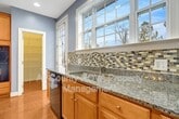 Welcome to this charming townhome, perfectly situated just a quick 5-minute drive from the metro! You'll love the spacious open floor plan, complete with gorgeous wood floors throughout the main level. Step into the gourmet kitchen, which is a chef's dream with its inviting island, elegant wood cabinetry, and stunning glass tile backsplash. It even has a cozy gas fireplace, a smart thermostat for convenience, and a delightful balcony for those relaxing evenings. The tranquil owner's suite offers a luxurious bathroom retreat equipped with dual vanities, a rejuvenating soaking tub, and a spacious walk-in closet. Upstairs, you'll find a handy laundry room, along with two lovely bedrooms and an additional bathroom. The lower level is so versatile, featuring pocket doors leading to a flexible bedroom with a full bath, perfect for an office or exercise space. Plus, there's a 2-car garage! Towne Alexander is just a short car ride away – come and explore all the possibilities! Small dogs welcome.