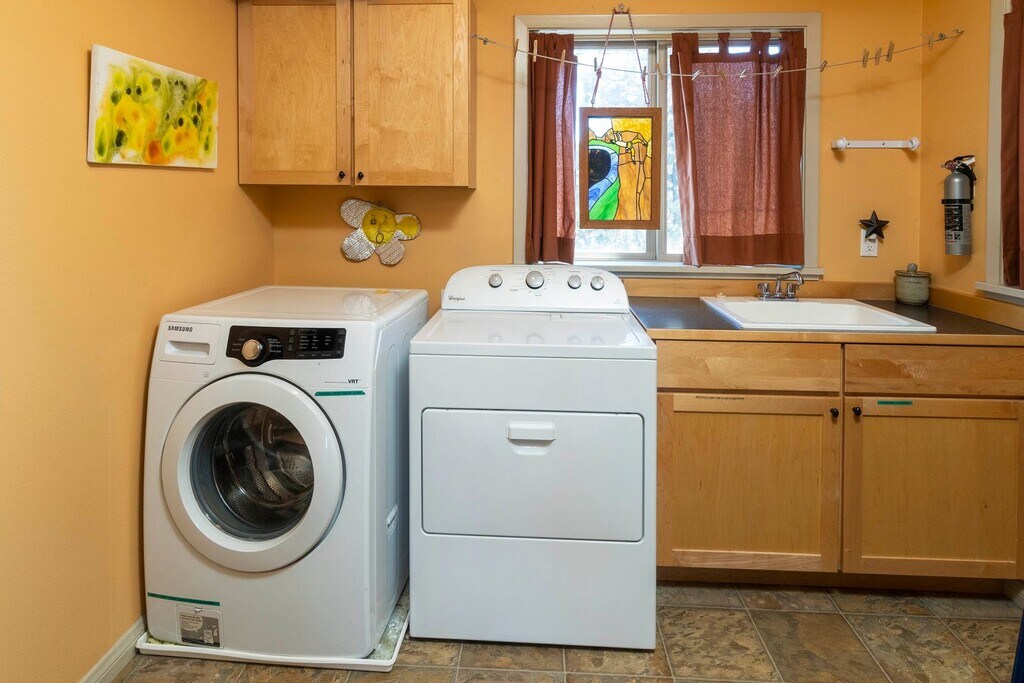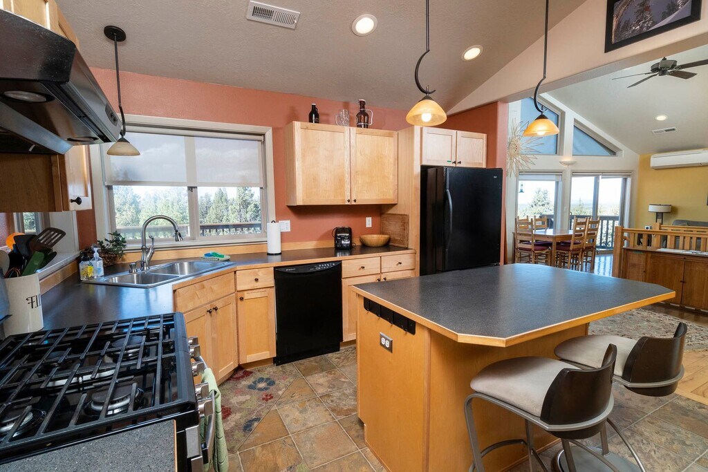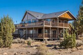 This house on Gift Road is situated perfectly just outside of town, with lots of privacy, views of the mountains and plenty of space inside and out. The kitchen is an entertainer's kitchen, open to the 2nd floor living space with views and high end appliances. Also on the 2nd level is the master bedroom, laundry room and 2nd bathroom. The huge glass doors open up to the deck overlooking the mountains. The first level houses the other two bedrooms, a bathroom, a lounge area with a stove, and a small bar. There is also a deck off this level. As always, all utilities are included as well as Wi-Fi. This house does not have cable. Full Kitchen Gas Stove Refrigerator Back Porch Great Views Laundry Room Washer and Dryer Wi-Fi 30-day minimum stay, please inquire about your dates.