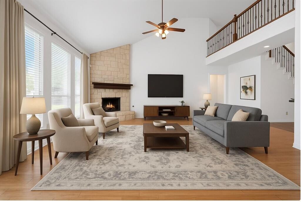 Welcome to elevated living in this stunning 4-bedroom, 3.5-bath home nestled in a sought-after golf course community of Star Ranch with quick access to Hwy 130, Hwy 45, and Hwy 79. Positioned on a spacious corner lot, this beautiful home combines timeless design with everyday convenience and is just minutes from shopping, dining, and top-rated schools. Step inside to find soaring ceilings and a dramatic staircase that makes a grand first impression. The open-concept living area features a wall of windows and flows seamlessly into the breakfast area and gourmet kitchen, creating the perfect space for both relaxed living and elegant entertaining. The kitchen offers abundant counter space, a large pantry, and easy access to the formal dining room which is ideal for hosting dinner parties. Working from home is a breeze with a dedicated front-facing office filled with natural light. Upstairs, enjoy a large game room, two generously sized bedrooms with walk-in closets and a shared bath, plus a spacious media room wired for sound and complete with a hidden storage closet. A separate guest suite with its own private bath and walk-in closet provides ultimate flexibility. Fresh interior paint, new carpet, two new water heaters (2025), and a recently replaced HVAC system (2023) ensure peace of mind. Outside, unwind under the covered patio overlooking the large, level backyard, perfect for gatherings or quiet evenings at home. Community amenities include golf, parks, playgrounds, and more. This one checks all the boxes~luxury, location, and lifestyle!