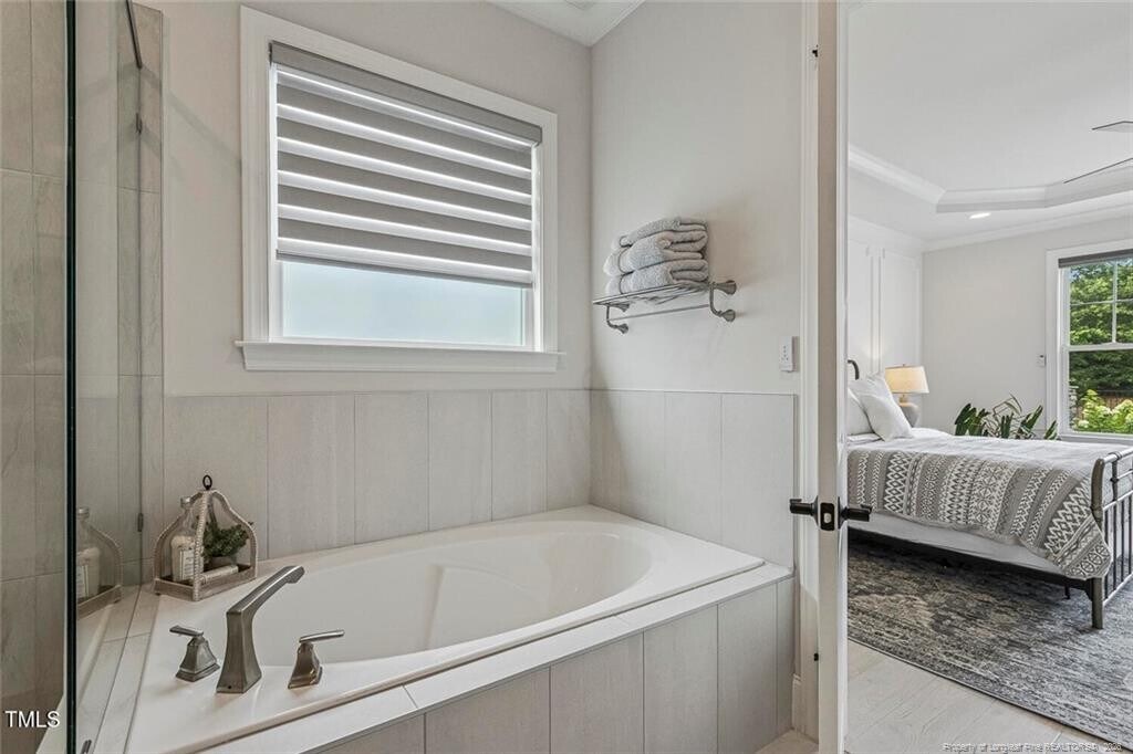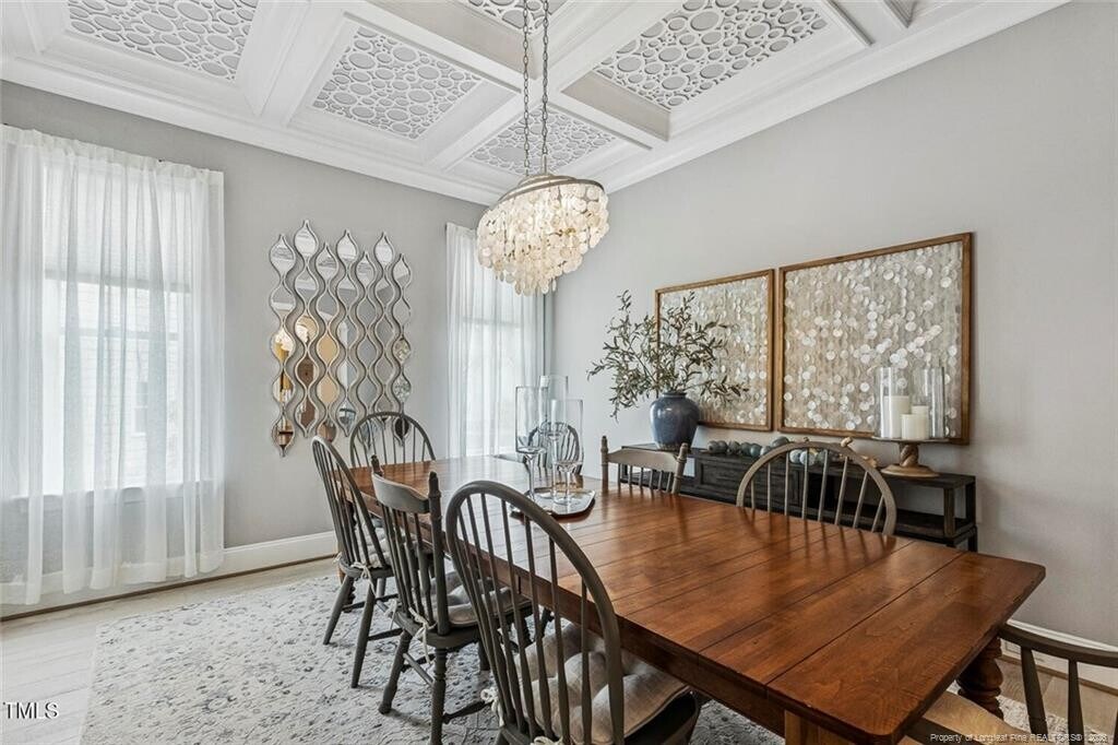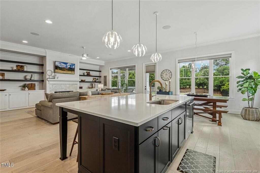 **FREE LAWN CARE: Sign lease by May 1st, receive 4 months of free biweekly lawn care.**Discover refined and elegant living in this beautiful, custom-built residence located in the sought-after Manors of Bella Casa in Apex. Available immediately and offering approximately 3,900 square feet of sumptuous living space. Upon arrival, you’re greeted by a beautiful façade, a marvelous 3 car garage, & a charming covered front porch. Step inside, and you are welcomed by an open and airy floor plan highlighted by rich hardwood floors, abundant natural light, & high-end features throughout. Take the foyer down the hall where you'll find a breathtaking dining room on the right. It features a coffered ceiling accentuated by a custom chandelier, double windows, & easy access to the kitchen around the corner. The dining room flows seamlessly into the kitchen, & an expansive family room. This kitchen features acres of quartz countertops under recessed lights as well as an abundance of cabinetry & a custom-tiled backsplash that’s accentuated by under-cabinet lighting. The stainless-steel appliance package includes a wall oven, a built-in microwave, and a gas oven with a hood vent above. The sprawling island is the “center attractionâ€, and it boasts triple pendant lights, a contrasting cabinet color, a breakfast bar & an undermount stainless sink. The perfectly proportioned breakfast nook is conveniently located adjacent to the kitchen & features multiple picture windows. Finally, you’ll be drawn to the impressive family room showcasing triple picture windows, recessed perimeter lighting, a ceiling fan & a centrally located gas log fireplace with a TV mount above and custom built-in shelving flanking the sides. 2098 Amalfi continues to impress with a desirable first floor primary bedroom. Here, you’ll find hardwood floors, a tray ceiling with a fan, recessed perimeter lighting, triple picture windows, & accent wall with custom trim work and a stunning walk-in closet. The primary suite also enjoys direct access to a luxurious, spa-inspired bathroom that offers a lavish soaking tub, a quartz topped vanity with dual undermount enamel sinks, a private water closet, & a tiled walk-in shower; complete with a bench, shampoo niche, dual showerheads, & a frameless glass surround. The main level is also home to bedrooms #2 and #3; both quite spacious with ample closet space, custom touches, & easy access to a beautifully appointed “Jack and Jill†bathroom featuring a granite-topped vanity with dual undermount sinks, vintage-inspired light farmhouse-style lighting & a custom-tiled shower/tub with a transom window and a shampoo niche. Before heading upstairs, be sure to visit the tucked-away powder room as well as the drop-down area just inside from the garage entry and the conveniently-located laundry room with a shiplap accent wall, white cabinetry, a granite countertop, a utility sink, & a washer/dryer included for resident’s use. Ascend to the second floor where you’ll find a bonus room, bedroom #4 and a recreation room. The bonus room showcases a French door entry & double picture window. Bedroom #4 includes triple picture windows, a double wall closet, & an en-suite bathroom with a quartz-topped vanity & a gorgeous tub/shower with a tiled surround. Finally, be sure to check out the absolutely expansive recreation room. This room could be enjoyed in different manners and includes a walk-in closet, picture windows, & easy access to the walk-in attic space. Before concluding your tour, be sure to visit the backyard oasis! The family room leads directly into a lovely, screened-in porch with a stained beadboard ceiling, gorgeous views, privacy curtains, & even a ceiling fan. From there, you’ll be drawn to the adjoining flagstone patio with a dramatic stacked-stone outdoor fireplace; the perfect place to unwind in the evenings under the stars! The rest of the backyard is impressive with a wrought-iron fence, gorgeous grass, curated landscaping, & more.