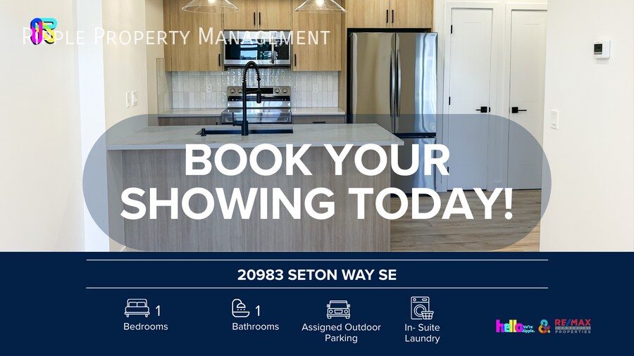 AMAZING 1 BEDS, 1 BATHS TOWNHOUSE | NO PETS ALLOWED Welcome to your next home! This beautifully maintained 20983 Seton Way SE offers the perfect blend of comfort, style, and convenience in the community of Seton SHOWINGS: Open-house format — book today! Prices, availability, and promotions subject to change without notice. Features: - Furnished or Unfurnished: Unfurnished - Utilities Included: No Utilities Included - Pets: No Pets Allowed - Smoking: Non-Smoking - Parking: Assigned Outdoor - Storage Included: No - Laundry: In- Suite Laundry - Management Type: Full Management - Lease Term: Long Term Why You'll Love It: - Bright & Spacious Living Area: Features high ceilings, expansive windows, and direct access to the balcony/backyard. Includes custom built-in cabinetry for added storage. - Gourmet Open-Concept Kitchen: Equipped with quartz countertops, a walk-in pantry, and soft-close cabinetry. - Premium Appliances: Full stainless steel package included (fridge, stove, microwave, dishwasher) plus a built-in humidifier. - Upgraded Island: Features designer spotlighting and an extra storage column with four drawers. - Private Bedroom Retreat: Offers generous closet space and includes premium blackout roller shades for restful sleep. - Move-In Ready: Custom roller shades included throughout the home. - Maintenance-Free Living: Professional lawn care and snow removal are included in the rent.? Location Perks: - Prime Location: Situated in the heart of Seton, Calgary's "South Urban District," combining city-style convenience with suburban comfort. - Walkable Lifestyle: Steps away from the South Health Campus, Superstore, Save-On-Foods, and Shoppers Drug Mart. - World-Class Recreation: Walking distance to the Brookfield Residential YMCA (the world's largest YMCA), featuring a surf simulator, ice rinks, and a public library. - Entertainment & Dining: Minutes from the Cineplex VIP Cinemas and popular dining spots like Starbelly Open Kitchen, The Tommyfield Gastro Pub, and Good Earth Coffeehouse. - Easy Commute: Quick access to major routes including Deerfoot Trail (Hwy 2) and Stoney Trail (Hwy 201), plus future Green Line LRT access. - Outdoor Living: Close to the 16-acre Seton Central Park and an extensive network of pathways for walking and biking. ONE MONTH FREE offer: A special savings equal to one month's rent (maximum), spread evenly across your 12 month lease. For leases with initial term less than 12 months, the incentive will be prorated accordingly. Book your viewing today — this one won't last.