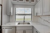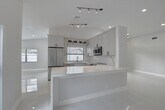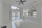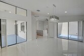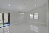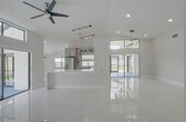Completed renovated from top to bottom, featuring high-end finishes, no detail has been spared! The home showcases a stunning kitchen with Custom wood cabinetry, Stainless steel appliances, and a luminous Water-drop Quartz kitchen top and backsplash. Gorgeous porcelain tile and waterproof Vinyl plank flooring throughout. Bathrooms feature elegant dark wood vanities topped with granite and contemporary tile work in the showers.Practical upgrades include Epoxy garage floor, a separate laundry room with full-size appliances, and hurricane-rated accordion shutters for peace of mind. Entertain with ease in the multiple living areas, including a living room, family room/foyer, and dining room, all enhanced by vaulted ceilings, 2-car garage. Step outside to not one, but 2 screened patios