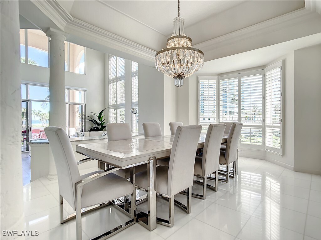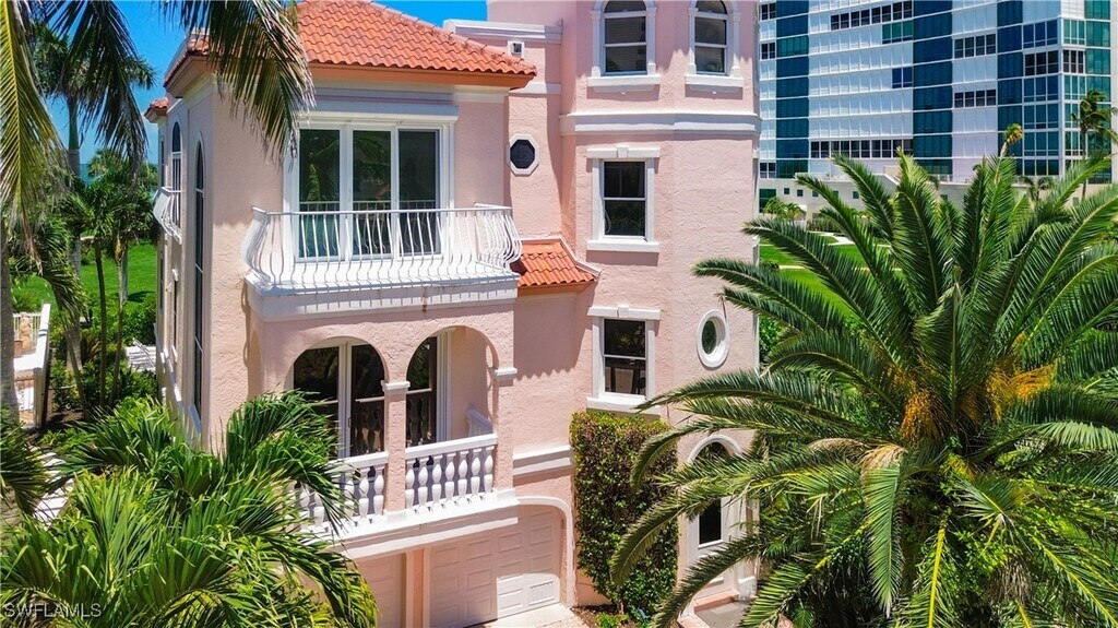 Beautiful views of Gulf of Mexico!!! Enjoy the best location on Park Shore Beach in the lovely Casa Mar enclave. This very special residence has stunning 28' ceilings in the living room,exquisite tall windows and a beautifully decorated interior .Some of the features include private elevator,20" x 20" marble floors in the living and dining rooms,spacious kitchen with eating area,plantation shutters,huge master bedroom closets,and a fantastic guest suite on the main floor. This home provides a two car garage,a private pool and spa. Ground floor level indoor/outdoor screened lanai with equipped kitchen and full bath provides an additional 1300 poolside square feet. Walk out onto your own fenced back terrace with lush landscape and direct access to the sandy beach and the Park Shore promenade – a private 1.3-mile paved path to stroll . Great location just steps to Venetian Village.Casa Mare enclave