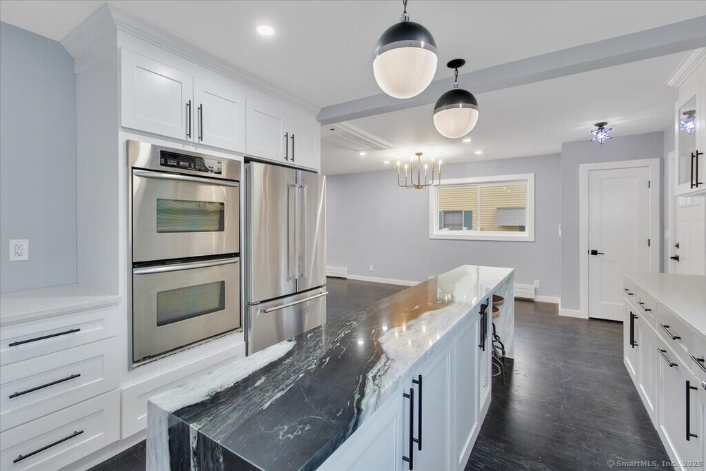 Call for Availability - This exceptional single-family home has been completely remodeled to offer luxurious living with modern elegance. Featuring three spacious bedrooms and two full bathrooms, each bath is outfitted with a soaking tub, Syn-Mar walk-in shower, and heated floors for a spa-like experience. The chef's kitchen is a culinary dream, boasting a 6-burner gas cooktop with oven, two built-in ovens, stainless steel appliances, solid wood cabinetry, and a stunning Brazilian quartz waterfall island. The dining room is open to the kitchen & living room. The living room offers an electric wall fireplace and continues into more finished space which is great for a playroom or office. The finished lower level provides additional living space, perfect for a family room or home office. Second floor laundry room. An attached one-car garage adds convenience, while the private backyard-enclosed by a brand-new vinyl privacy fence-offers a serene outdoor retreat. This home blends high-end finishes with thoughtful design, making it a rare rental opportunity you won't want to miss. All appliances included. Gas heat & hot water. Public connect for water & sewer. No pets, no smoking. 2 months security plus 1st months rent & good credit a must! Tenants must carry renter's insurance. This home will NOT disappoint... Energy Star efficient! MLS# 24134589