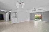 Enjoy the best of leisure living in this beautifully updated home,located in a gated 55+ community with resort-style amenities including a clubhouse,pool,and tennis courts. This move-in ready property features 2 spacious bedrooms,2 full bathrooms,an open floor plan with bright,airy living spaces,fresh paint,and brand-new flooring throughout. The primary suite offers a sliding glass door leading to a covered back patio,perfect for relaxing outdoors. Ideal for retirees or anyone looking to downsize without sacrificing comfort,this well-maintained home combines style,convenience,and an active lifestyle in a welcoming neighborhood.