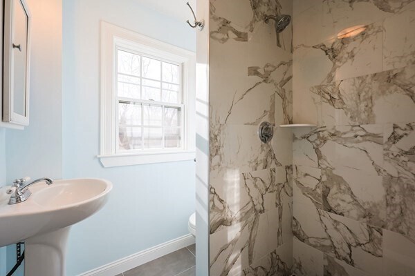 Fantastic 3 bedroom,2 bath,first floor apartment in pristine condition! Kitchen has lots of cabinets,granite counters,stainless appliances including gas cooking,and tile floor. Modern,tiled bathrooms. Gorgeous mellow hardwood floors and vinyl replacement windows. Exclusive use side porch or mudroom. Dedicated laundry hookups and extra storage space in the basement. Lots of off street parking,and a great backyard for common use. French Ave is a quiet-ended road with conservation land at the end (Lower Snake Brook) - yet in an ultra handy location near every major commuter route and just 2-3 blocks from the grocery store,pharmacy,bank,post office,eateries and more! Tenant pays gas heat/hot water/cooking + electricity. First and security upfront. Seeking respectful tenant who will care for property as if their own. MLS# 73505959