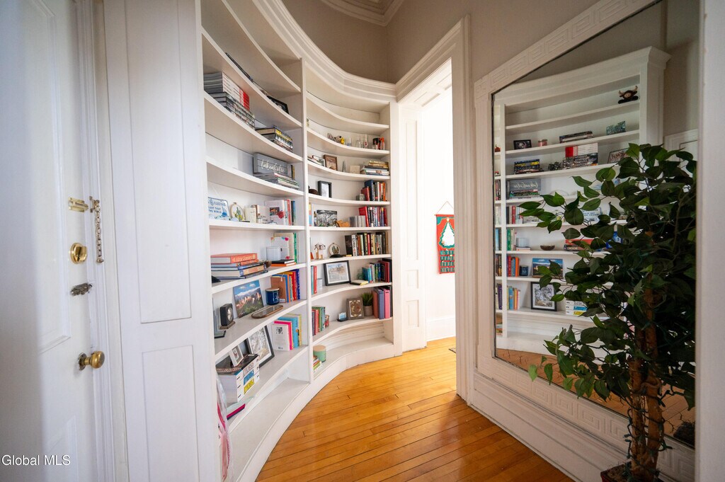 This 3 bedroom,2 bath apartment located in the heart of Schenectady's historic Stockade District. This 2nd floor unit offers a rare blend of classic character and modern comfort. Set within a charming brownstone features hardwood floors,built-in bookshelves,and thoughtfully preserved architectural details that reflect the neighborhood's rich history. Both bathrooms are finished with ceramic tile,complementing the apartments timeless aesthetic. Enjoy outdoor living on a private deck overlooking the Mohawk River—an ideal setting for morning coffee or evening relaxation. The layout is both functional and inviting,perfect for everyday living or entertaining. Ideally situated within walking distance to local shops,cafés,and downtown Schenectady,residents can easily access broadway shows at Proctors Theatre and entertainment Mohawk Harbor & Rivers Casino,scenic riverfront paths,dining,and year-round cultural events. This is a unique opportunity to live in one of the Capital Region's most sought-after historic neighborhoods while enjoying the convenience of an active,walkable lifestyle.