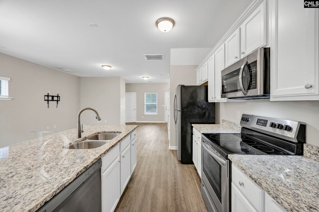 Kitchen. The Kitchen includes a large island perfect for entertaining, granite countertops, stainless steel appliances, and a pantry. A Half Bath, coat closet, and generous Laundry Room complete the first floor. All bedrooms are located on the second level. The expansive Primary Suite boasts a private bath with a granite vanity and a large walk-in closet. Two additional bedrooms share a convenient Jack-and-Jill bathroom. Enjoy the covered patio with a locking storage closet—ideal for extra space. Conveniently located near major interstates, within Richland One Schools, and just minutes from Harbison, Downtown Columbia, and Lake Murray. Disclaimer: CMLS has not reviewed and, therefore, does not endorse vendors who may appear in listings.