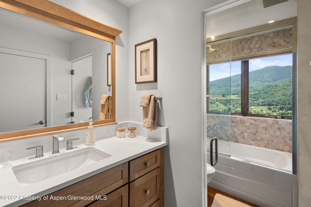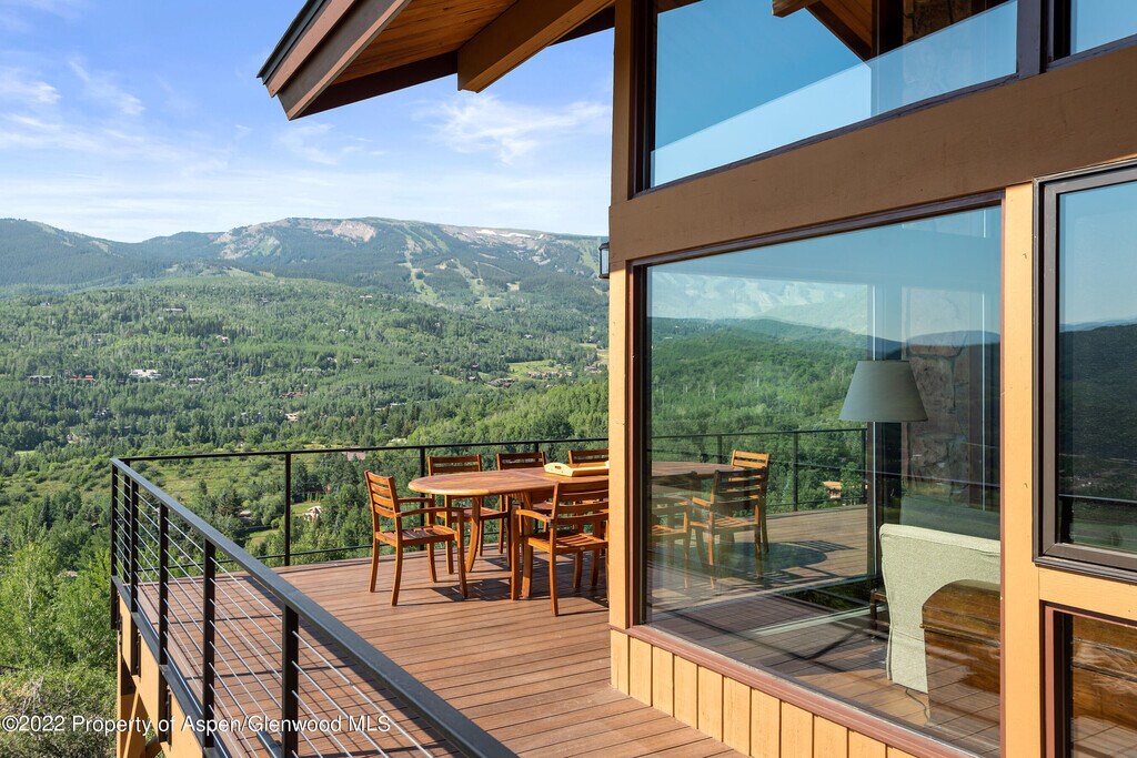 A stylish,mid-mountain retreat with sweeping mountain views,Perfect View sits just 5 minutes from skiing at Snowmass and 20 minutes from downtown Aspen. Defined by walls of windows,stacked-stone fireplaces,and vaulted tongue-and-groove ceilings,this vintage home welcomes guests to an open-concept living area with a classic lodge ambience. Settle into one of two full-length sofas by the wood-burning fireplace,find inspiration at an antique drafting desk,or step onto the expansive upper-level deck to enjoy views that stretch from Independence Pass to Sam's Knob. Steps from the living area,an 8-seat formal dining table offers space for sit-down dinners. Six stools at the breakfast bar allow for larger groups or a separate ''kids' table.''On blue-bird days,fire up the gas grill for dinner al fresco at the 8-seat patio table. Ideal for families or larger groups,this home also features a lower-level den with a large-screen TV,wood-burning fireplace,pool table and twin-size daybed. Give kids their own space to play,or use this space for apre-ski at home. Glass doors open this level to a covered patio and hot tub with mountain views. Guests mixing work with leisure will also appreciate the den's office area,which overlooks the mountains through picture windows. Down the hall is a private guest suite. The home's four bedrooms,evenly spaced for privacy,accommodate up to 8 guests with flexible bedding configurations. A gourmet kitchen with stainless steel appliances and a private washer and dryer add all the comforts of home. From its convenient location near Snowmass Village,Perfect View offers access to all four of Aspen's ski areas in under 25 minutes. An attached 1-car garage makes it easy to explore the surrounding area,including hiking and biking trails,golf courses,playgrounds and live events. The restaurants,shops,galleries and entertainment downtown are 20 minutes away. Whether you're planning a ski vacation or summer escape,Perfect View is ideally situated to experience the year-round recreation and culture of Aspen. On blue-bird days,fire up the gas grill for dinner al fresco at the 8-seat patio table. Ideal for families or larger groups,this home also features a lower-level den with a large-screen TV,wood-burning fireplace,pool table and twin-size daybed. Give kids their own space to play,or use this space for apre-ski at home. Glass doors open this level to a covered patio and hot tub with mountain views. Guests mixing work with leisure will also appreciate the den's office area,which overlooks the mountains through picture windows. Down the hall is a private guest suite. The home's four bedrooms,evenly spaced for privacy,accommodate up to 8 guests with flexible bedding configurations. A gourmet kitchen with stainless steel appliances and a private washer and dryer add all the comforts of home. From its convenient location near Snowmass Village,Perfect View offers access to all four of Aspen's ski areas in under 25 minutes. An attached 1-car garage makes it easy to explore the surrounding area,including hiking and biking trails,golf courses,playgrounds and live events. The restaurants,shops,galleries and entertainment downtown are 20 minutes away. Whether you're planning a ski vacation or summer escape,Perfect View is ideally situated to experience the year-round recreation and culture of Aspen.