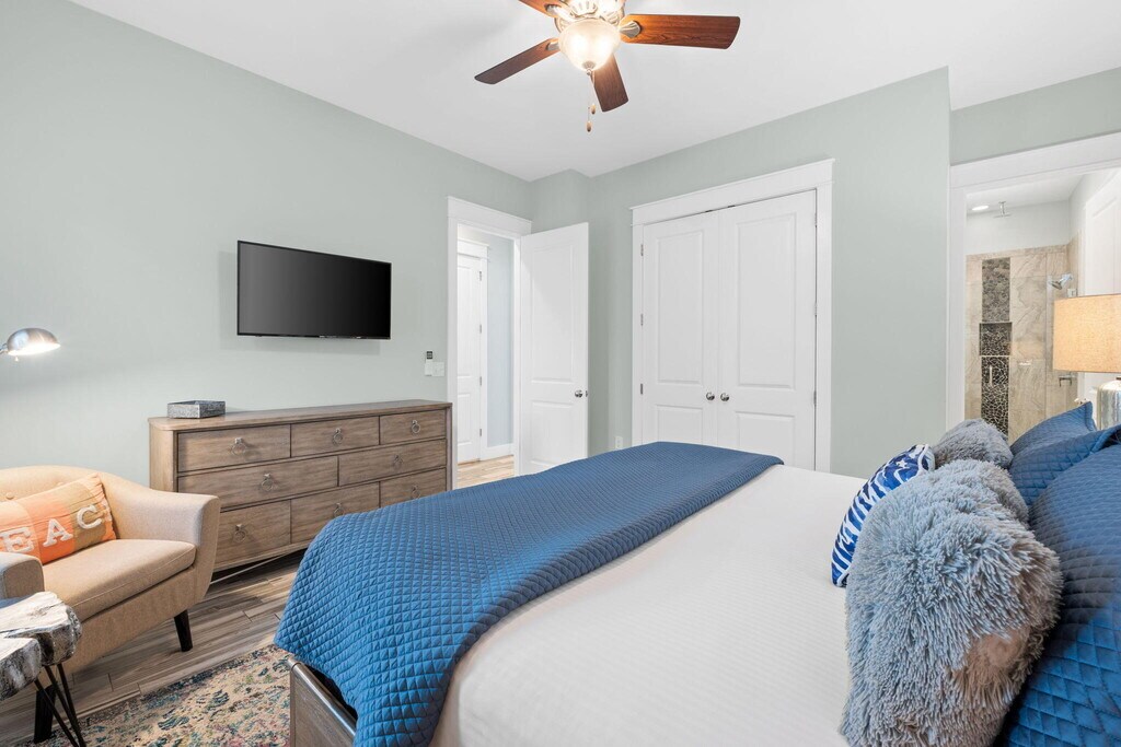 Available for a 6 month or 1 year lease, this 30A beach retreat offers comfort, style, and a prime location just 0.3 miles from Dune Allen Regional Beach Access. Tucked behind Stinky's Fish Camp on the west end of 30A, this home provides easy access to dining, beaches, and the best of coastal living. The open-concept layout features high ceilings and abundant natural light. The kitchen includes granite countertops, stainless steel appliances, a breakfast bar, and a dining area that flows into the main living space. The first-floor primary suite offers a double vanity and a tiled walk-in shower with a rainfall shower head. Upstairs, a bonus living area and two additional bedrooms provide plenty of room for relaxing or working.