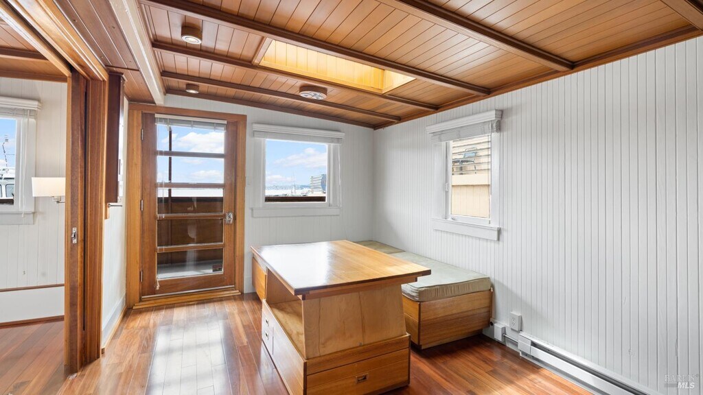 Charming 2BR/1BA Historic Tiburon Ark for Rent/Lease - Waterfront Living with Iconic Views Available Furnished - In-Unit Laundry - Flexible Move-In A rare opportunity to lease a beautifully restored piece of Tiburon's history. This partially furnished 2-bedroom, 1-bathroom ark, originally a floating home, now drydocked. Offers direct access to the best of waterfront living. Ideally located beside the Angel Island Ferry landing, this one-of-a-kind residence features panoramic views of Angel Island, the San Francisco skyline, and Belvedere Cove. Enjoy Tiburon's walkable downtown lifestyle with charming restaurants, shops, and ferry access just steps from your door. Whether commuting or exploring, San Francisco is just a 30 minute drive or 20-minute ferry ride away. Highlights include: ● Expansive rear deck with teak furnishings, ideal for morning coffee or evening champagne with unmatched views ●Fully equipped kitchen with granite countertops, gas cooktop, microwave, dishwasher, and quality cookware ● Elegant marble bathroom with dual shower heads ● Custom teak cabinetry and shelving throughout ● In-unit washer and dryer ● Smoke-free residence MLS#325081794