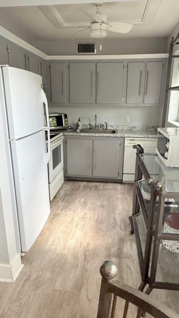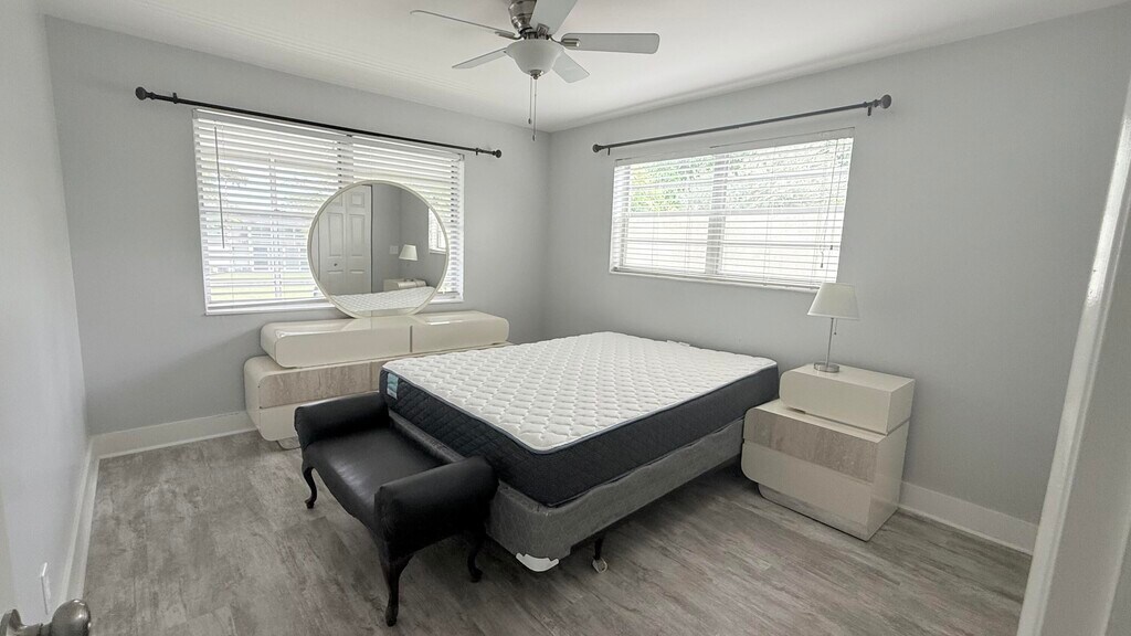 How does cocktails on your private screened enclosed balcony overlooking plush gardens, fruit trees, exotic birds wildlife and flowing canal outside your primary bedroom with walk in closet sound? This rare vacancy includes a ''State of the art'' gym membership AND HBO w basic cable.Our Courtyards offer ample stone tables and umbrellas for family BBQ and fresh herbs flowers and a delightful ylang ylang tree make this home magic.Emotional support pets are welcome & the association is non smoking to protect our lungs. Newly remodeled with modern Gray plank tile floors, 6 panel doors, glass shower doors, newer appliances under 1 year, circulating fans, & dimmers throughout for romantic ambiance.Entire condo has FRESH PAINT and NEW floors.