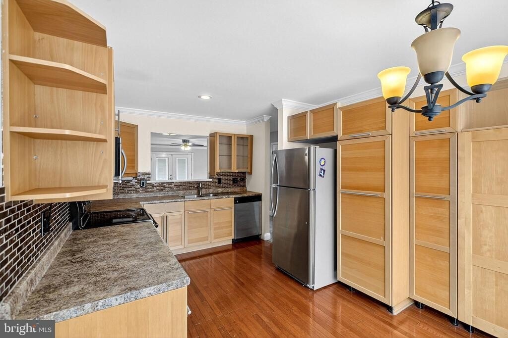 Welcome to 21 Monferrato Ct. in Bear! The name of the game is location and this gorgeous end-unit townhome sits in Pinewoods! Featuring 2 large bedrooms, a stunning full bath with dual sinks and a half bath on the main floor. The first floor features a jaw-dropping kitchen with a delightful backsplash along with a bay window. Right off of the kitchen - a huge living room highlighted by crown molding, along with a French Patio Door that leads to a large 2nd story deck overlooking the yard. It's perfect for entertaining on warm summer nights or just enjoying some fresh air and decompressing. On the 2nd floor you'll find two bedrooms and the full bath that is HGTV ready. The basement is fully finished and carpeted. Serving more than enough additional living space or rec area. Don't wait on this property - it won't be on the market long.