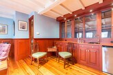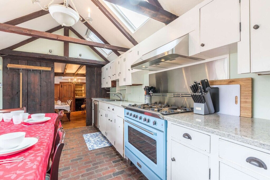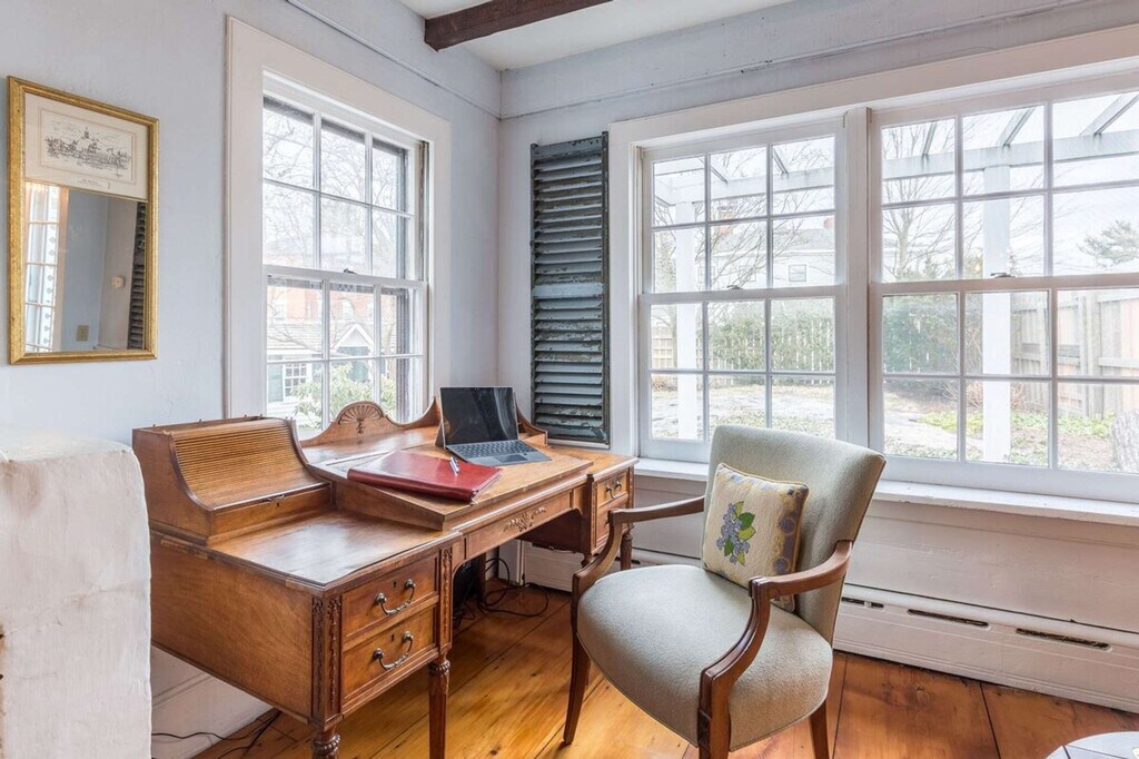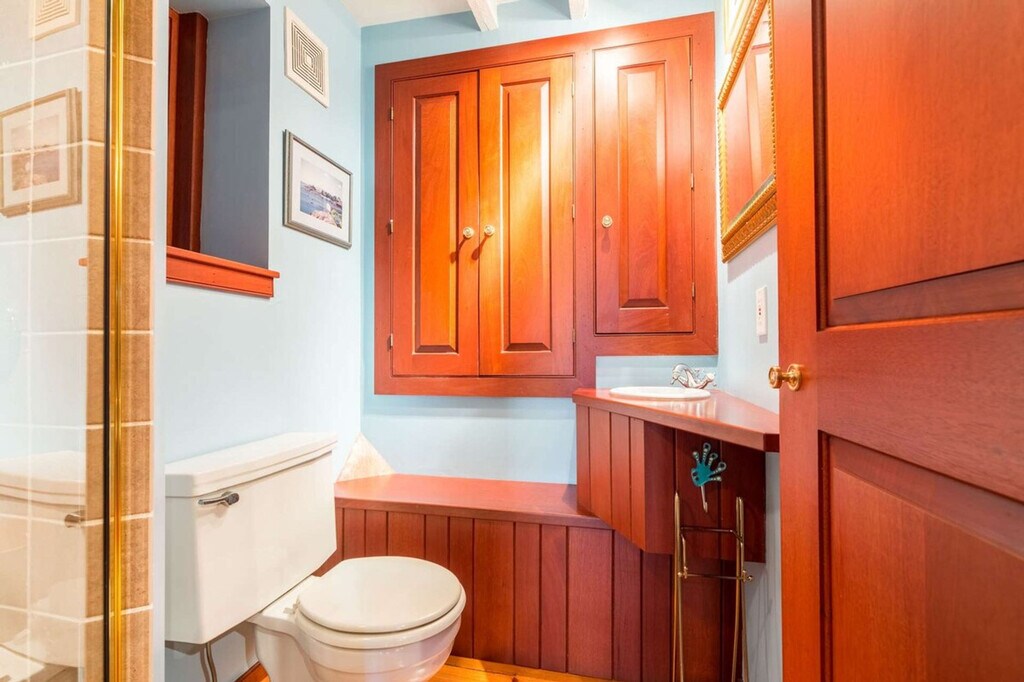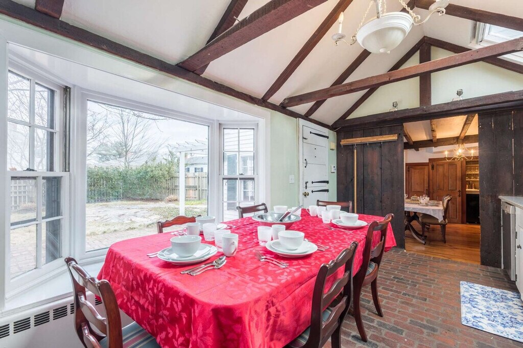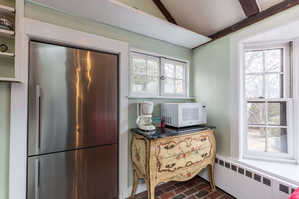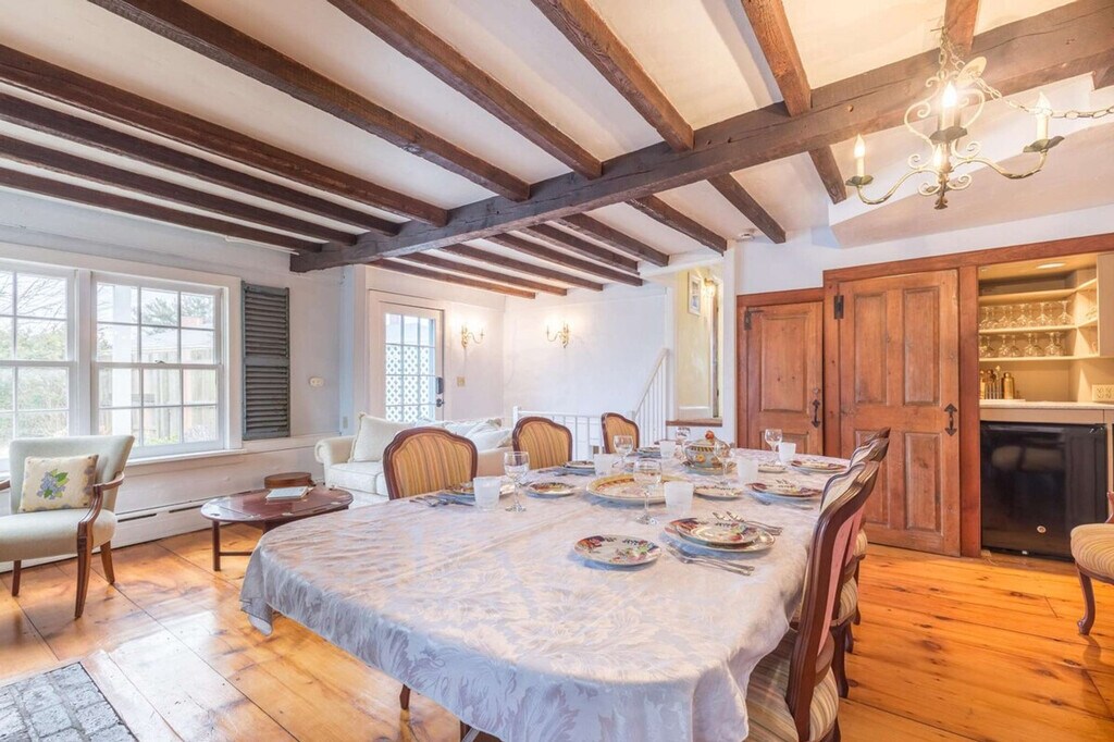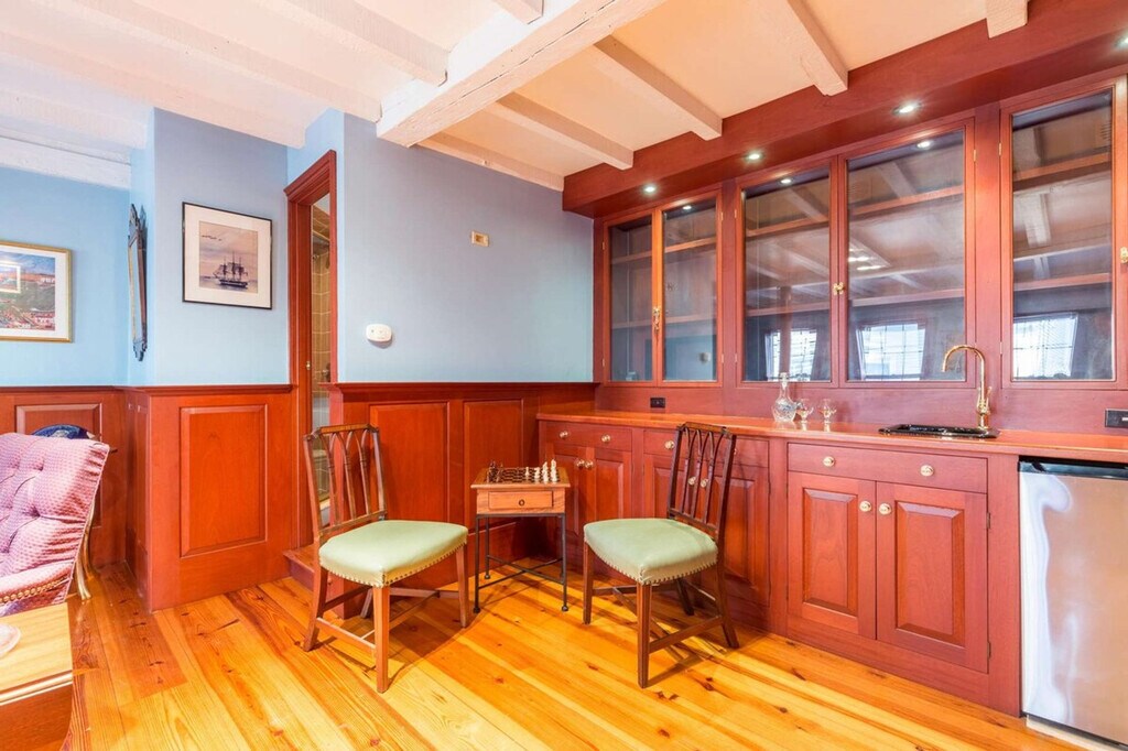 Experience the charm of Marblehead with a stay at Rockmere Inn, nestled in the heart of historic old town. This unique home spans six levels, each offering distinct living spaces, including three bedroom suites. As you enter from the Mechanic St entrance, you're greeted by an entertainer’s dining room with a table for 12, a workspace, and a seating area overlooking the garden. The home features narrow and steep stairways typical of colonial-era homes, with floors that slope, adding to its historic charm. Rockmere Inn is elegantly appointed with spacious accommodations. The dining room features an original decorative fireplace and a 300-year-old barn door leading to a gourmet kitchen with seating for eight and views of the private patio and garden. The massive living room, decorated with an international traveler’s flair, accommodates 14 guests with various conversation spaces. The Captain’s Quarter offers custom paneling, a wet bar, and a private bath, reminiscent of a luxury yacht. Rockmere Inn offers off-street parking and a luxury Pack-n-Play or other children's furnishings are available for an additional charge, subject to availability. Marblehead, founded in 1629, is a town rich in history and charm. Explore the colorful, narrow streets of Old Town, discover well-preserved 18th-century houses, and visit national historic landmarks. Enjoy breathtaking views of Marblehead Harbor, the birthplace of the US Navy, and relax at Devereux Beach with its picnic tables and playgrounds. The town offers a variety of dining and shopping options, making it a perfect destination for history enthusiasts and leisure travelers alike. Smoking is strictly prohibited, and guests will be fined and immediately evicted for smoking or vaping in the home or on the property. No parties, events, performing artists, or bands are allowed at any time, as these are grounds for eviction with no refund. The property features window air conditioning units installed in May and removed in September. Rockmere Inn has a strict no pets policy. The dining room includes a workspace with a comfortable seating area overlooking the garden, perfect for remote work. [SI]