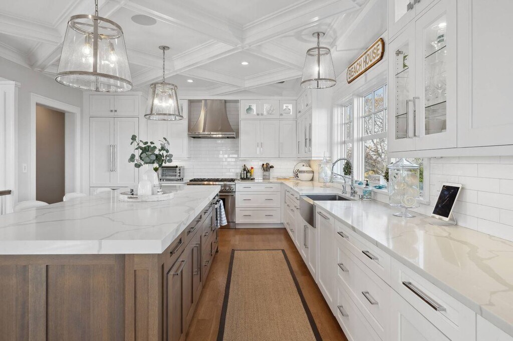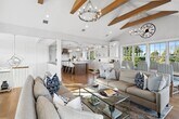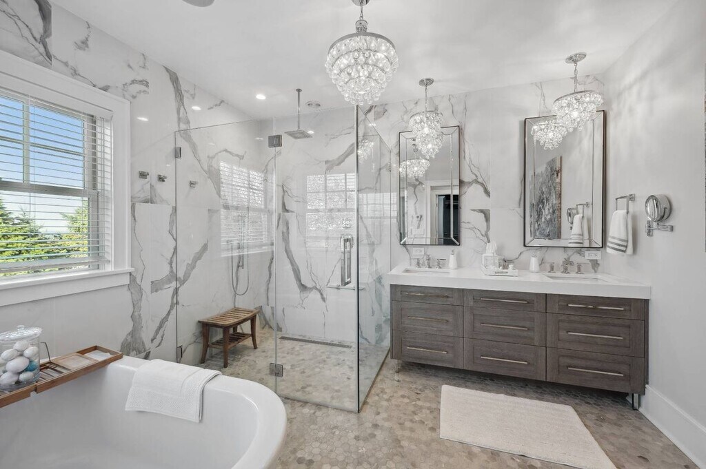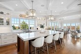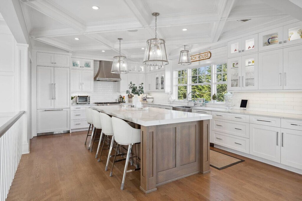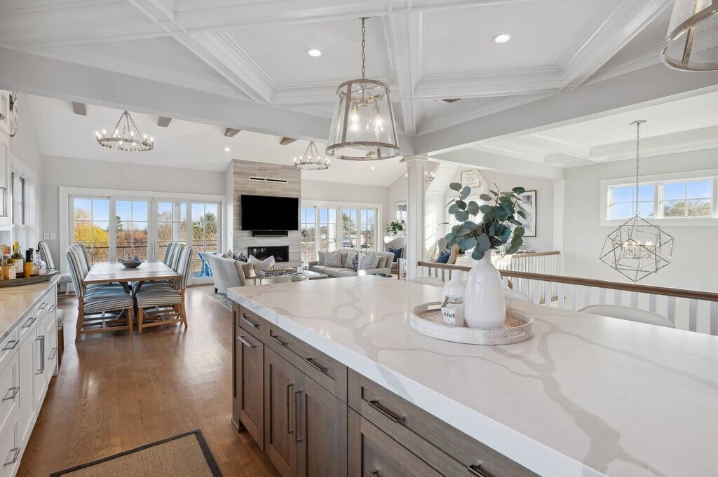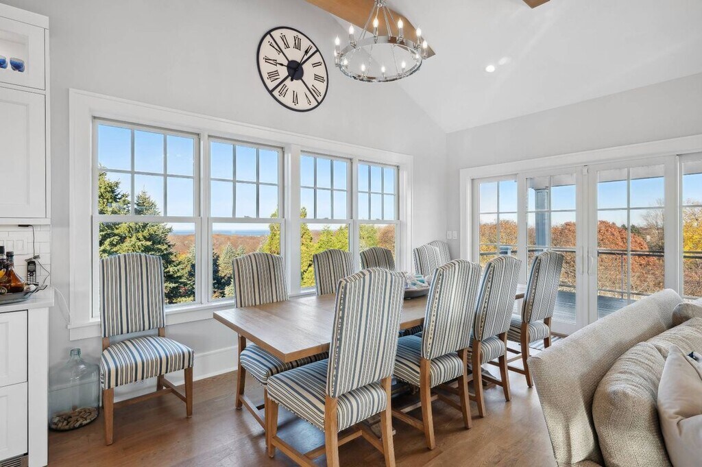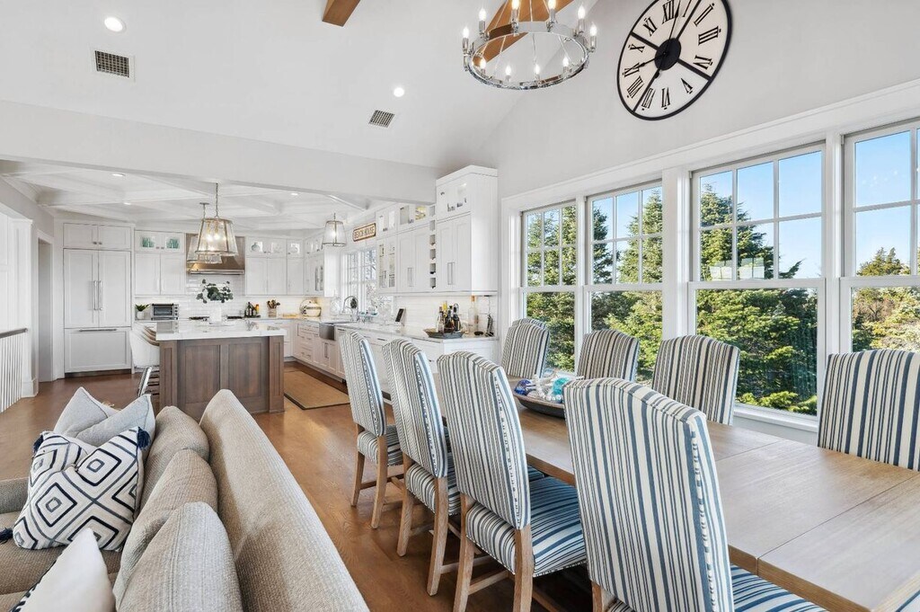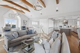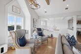 Situated on one of the highest points in Montauk with amazing views of Lake Montauk and Block Island Sound, this gorgeous 5,200 square foot home offers 6 bedrooms, 5 full and 2 half baths with a beautiful heated Gunite pool situated on a half acre of land. This new construction delivers attention to detail with high end design, finishes and state of the art systems. The grand staircase takes you to the chef's kitchen and open dining and living space with wonderful views. French doors open to a spacious outdoor deck for dining and lounging. The en-suite primary bedroom is on the upper level featuring a balcony off the bedroom facing west plus a large walk-in-closet, sitting area and stunning full bath with a stand alone tub. You will find an expansive lawn in the rear of the home that leads to the heated Gunite pool that features cascading waterfalls as well as an automatic safety cover that will maintain the heat. Additional features include an attached two car garage, fully wired smart home, high end laundry room, stunning lower level that has a open living area with direct access to the pool area, wet bar, en-suite bedroom as well as a fully equipped gym and game room area. This amazing Montauk home is centrally located near beaches, dining, shopping, and marinas. [[Rental Registration # 24-1168]]