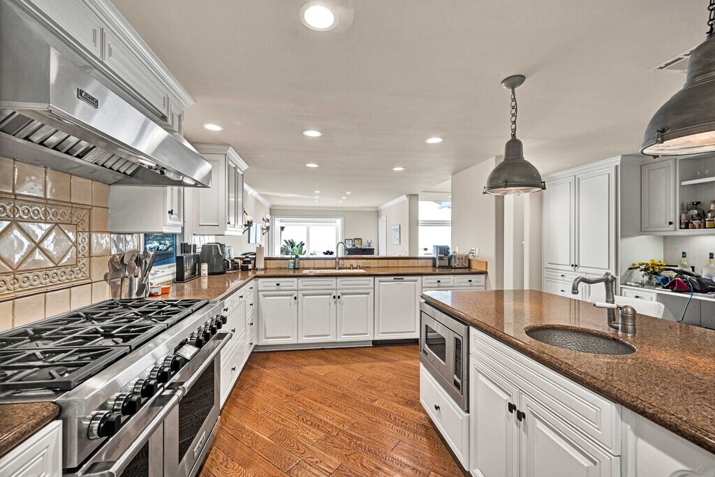 Coming Soon! Nestled in the private enclave of Three Arch Bay, this exceptional 4 bedroom (+ 5th bedroom potential), 4 bath coastal residence commands sweeping panoramic ocean views from nearly every vantage point. An elegant open-concept floor plan showcases exquisite craftsmanship with hardwood floors, timeless wainscoting, wood-beamed ceilings, and expansive windows that flood the interiors with natural light—creating a serene and sophisticated coastal ambiance. The expansive living room features a grand fireplace and is enhanced by vaulted ceilings and dramatic coastline vistas—ideal for both relaxed daily living and elevated entertaining. The chef’s kitchen is refined and functional, featuring stone countertops, center island, custom cabinetry, and a professional-grade Wolf stainless steel range. Ocean-view decks provide the perfect setting for al fresco dining and sunset gatherings. Other features include an indoor laundry room, ceiling fans, and custom built-ins for ample storage throughout. Residents of Three Arch Bay enjoy unparalleled community amenities such as private beach access, sports courts, playground/park, and fun community and holiday events throughout the year. Available approx. 4/1/2026, annual lease term only. **Property is unfurnished, any furniture/furnishings shown owned by previous Tenant.**