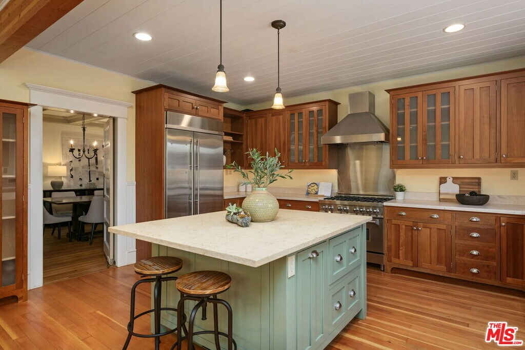 A one-of-a-kind restored 4 bed/3.5 bath Craftsman located on prime Venice walk street with the perfect blend of incredible authentic perioddetails blended with updates and one of the LARGER 5,396sf LOTS in the area. Gated large grassy front yard leads to inviting spacious covered front porch.Oversized living room with wood-beam ceilings, stone finished fireplace, beautiful built-ins and bay window with original stained glass accents. Spaciousformal dining room fits table for 10, opens to updated gourmet kitchen with center island, travertine countertops, stainless steel appliances including 2dishwashers and newer 6 burner range and double ovens. Charming breakfast room with built-in banquette and den/office area all open to entertainer'sback deck and large yard with brick patio, hot tub, fire-pit and built-in barbecue. 4 bedrooms upstairs include spacious primary suite with large walk-incloset and sunny bay window with built-in bench. Primary bath includes double rain shower heads and marble-finished vanity with dual basins. 4thbedroom with vaulted ceiling, 2 closets, built-ins and ensuite 3/4 bath. 4-CAR PARKING, including 2-car garage with auto door and EV charger. Hardwoodflooring throughout, wainscoting wall accents, central ac/heat, all updated bathrooms, wired alarm system. Steps to boardwalk and beach, and ideal closeproximity to trendy Abbot Kinney, Santa Monica Main Street and Marina Del Rey restaurants and retail. Breathtaking sunsets just steps away! MLS# 25575509