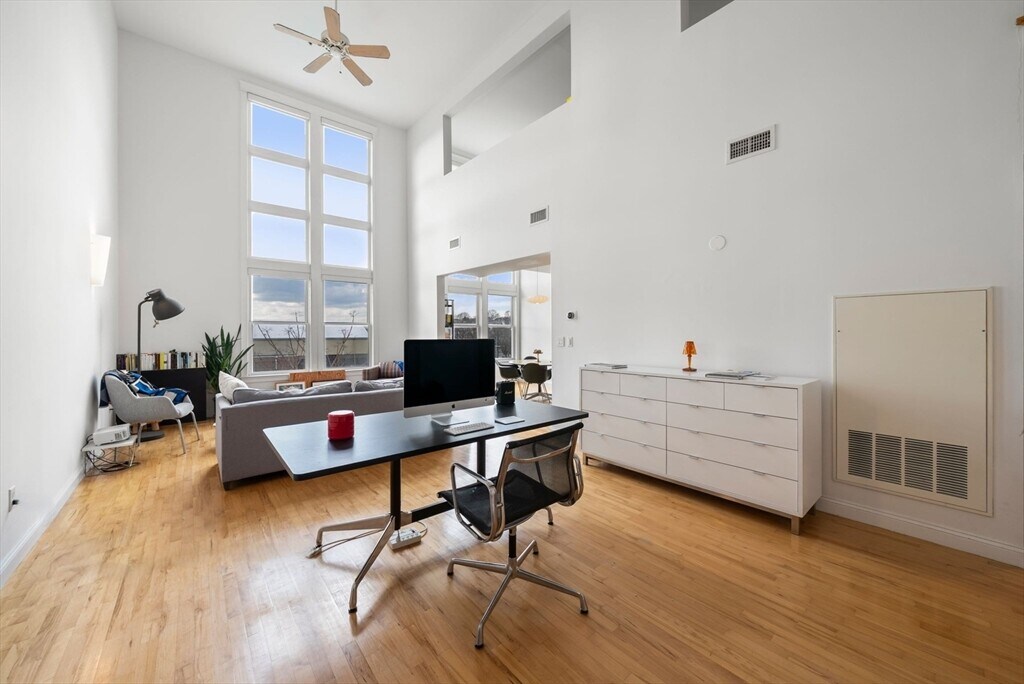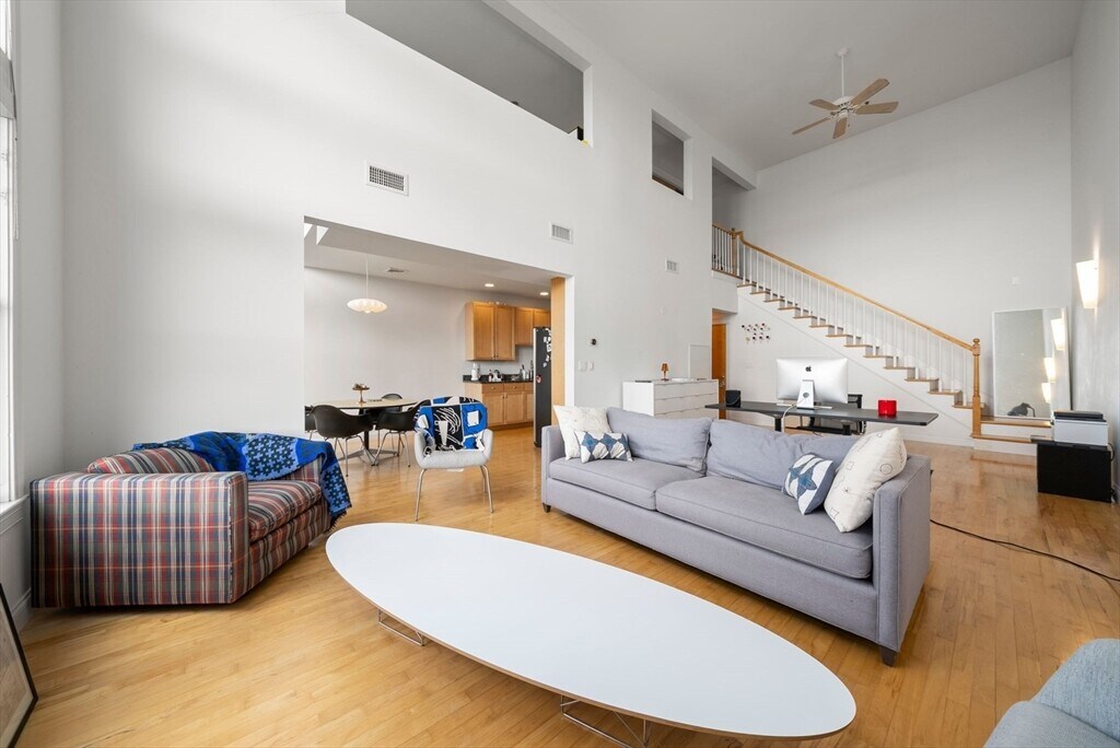 Penthouse living in the heart of Union Square. Set at the top of a professionally managed building,this bright duplex offers space,light,and a loft-style feel in an ideal location. Fifty-one steps up (yes,you’ll earn your views),you’re welcomed into an open living and dining area with soaring ceilings,oversized windows,and excellent natural light. The kitchen features stone countertops,gas cooking,and stainless steel appliances,flowing seamlessly into the main space,perfect for everyday living or entertaining. Step out to your private deck for evening light,or retreat upstairs to the lofted primary suite overlooking the living area below. Additional features include central air,in-unit laundry,hardwood floors,and one off-street parking space. Moments to Union Square,with easy access to Harvard,Porter,and public transit,come explore all the Somerville has to offer. MLS# 73503682