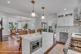 Available for the following dates. June 6 to June 20 @$4500. per wk. June 20 to Sept. 4 @$5500. per wk. Sept.5 to Sept 12 @$5000. per wk. Sept 12 to Sept 26 @$4500. per wk. Owner prefers 2 wk minimum in Summer (Jun 20-Sept 4). Enjoy refined summer living in this sun-filled 3-bedroom,2.5-bath,renovated Victorian home,with timeless charm & modern comfort. Front wrap-around front porch for relaxing. Backyard deck overlooks a large fenced-in yard with lush perennial gardens. Glamorous LR,DR & Den. On 2nd floor are 3 elegantly appointed bedrooms,each with a queen bed,including a primary suite w/ its own full bathroom. Located on a quiet side street,3 houses off the center of Main St,this home offers peaceful privacy w/ easy access to shopping & dining. Use of 6 beach badges & chairs