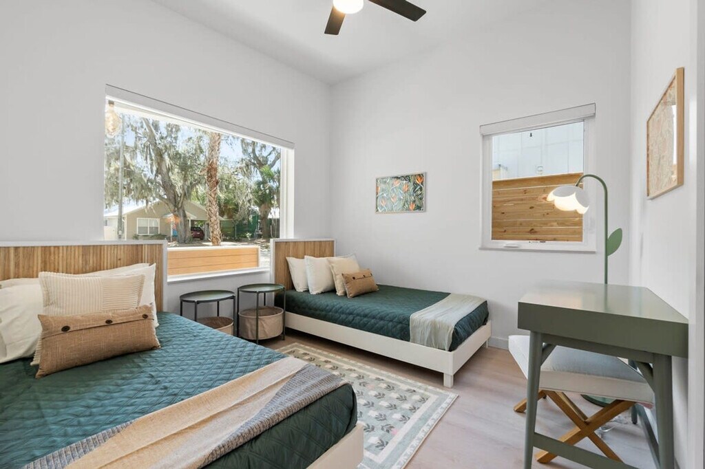 Feel at home in this bright and modern brand new 3-bedroom pool home in the historical West King district of downtown St. Augustine. Tastefully decorated and fully equipped for short-term or long-term stays, this home features a king-size bed in the master with an en-suite bathroom with walk-in shower, a queen bed in bedroom 2, and 2 twin beds in bedroom 3. The guest bathroom has a tub/shower combo. The kitchen is fully equipped. There is a full-size washer and dryer. Pool/spa heat is available for $25 per day, and off-street parking is available for 2-3 vehicles. The Peaceful Puffin is located in the West King district, full of history and charm. Popular local spots such as Buena Onda, the Cheese Wheel, and Bog Brewery are just around the corner. Adventure to Downtown St. Augustine, only a short 3-5 minute drive or quick bike ride from the home, or catch some Florida sunshine on the white sandy beaches at Vilano Beach, just a 10-minute drive from the home. St. Augustine is the nation’s most historic city and also holds the distinction of being one of the most charming. Experience flavorful dining, art and culture with an abundance of entertainment right on your doorstep. From the Castillo de San Marcos National Monument to the Ripley’s Believe It or Not Museum and everything in between, there is something for everyone and all just minutes from the home. Quiet hours are between 9 pm and 8 am. The minimum age to book is 21. The primary guest on the reservation must be present for the duration of the stay. If you have more guests on the premises than you have notated in your reservation, we reserve the right to charge an additional fee. This home is not suitable for bachelor/bachelorette parties, wedding parties, receptions, or any other large group gathering. Any guests visiting outside of the reservation must be approved by hosts prior to their arrival. Any guests outside of the reservation must vacate the property during quiet hours. Do not move furniture, appliances, or décor from where you found it upon check-in. Outdoor furniture must be returned to its original positioning in which you found it upon check-in. No pets are allowed on property at any time. Guests who stay past checkout time will be charged an additional fee of $50/hr. No vaping/smoking is allowed whatsoever on the property, including the front porch. If evidence of smoking is found, you will be subject to an additional cleaning fee. No underage drinking is allowed. Do not flush anything down the toilet except toilet paper. Renters are 100% liable for any and all property damage, caused by themselves or guests, during their stay. While we allow children, the home is not child-proofed. Parents with younger children use the home at their own risk. [SI]