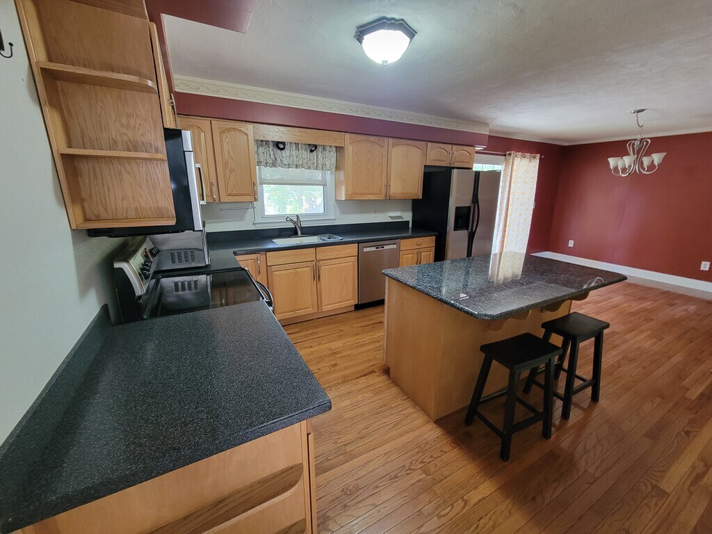 Lovely 3 bedroom, 1.5 bath brick home located in a gorgeous setting. Large living room, dining area, kitchen with stainless steel appliances and an island. Doors leading to patio. Family room / den in basement. Tons of storage space in the full basement. Fenced in back yard. Large front and side yard. No pets