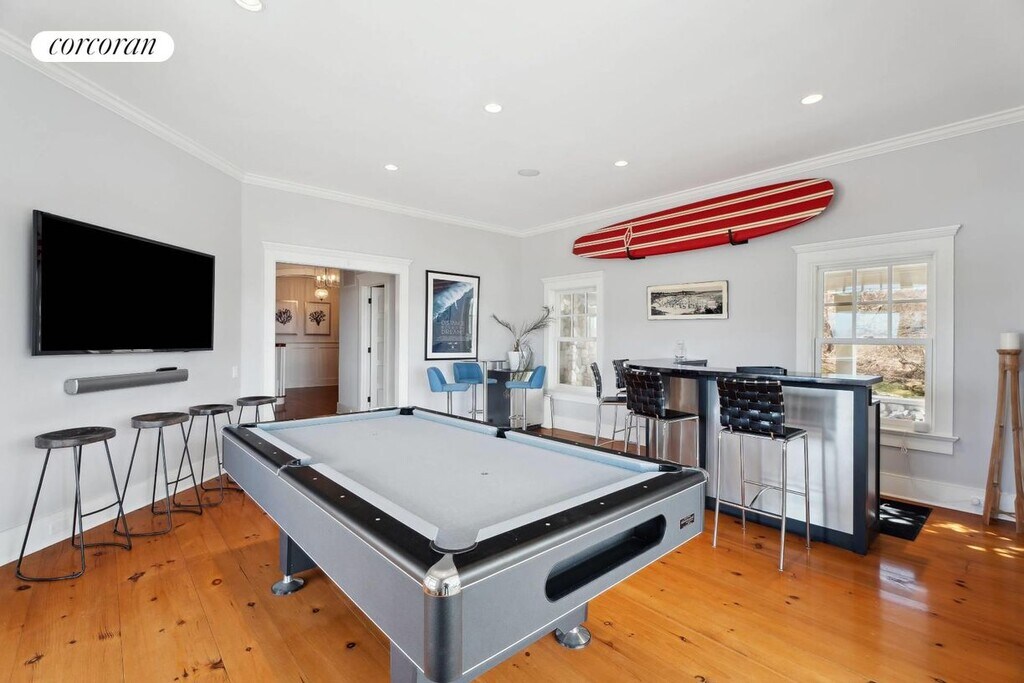 Fabulous rental opportunity with stunning views and gorgeous sunsets over Lake Montauk and Harbour. This 4 bedroom stunning home has a bonus room and 6 baths. The high-end gourmet kitchen in a spacious open living area is surrounded by endless views. A lower level, finished with comfortable seating, large tv, pool table and bar, leads out to gated yard with a heated pool and hot tub. There are multiple outdoor decks to enjoy the beauty of Montauk or to bask in the sun with family and friends. Master en-suite has its own outdoor deck while each bedroom has sliders leading outside to manicured grounds and gunite pool. Additional features include central Air, Sonos inside and out, 2 outdoor showers, indoor and outdoor fireplace, hot tub and views from every room. This is the perfect entertaining home with ping pong, pool table and bar. [[Rental Registration # 25-46]]