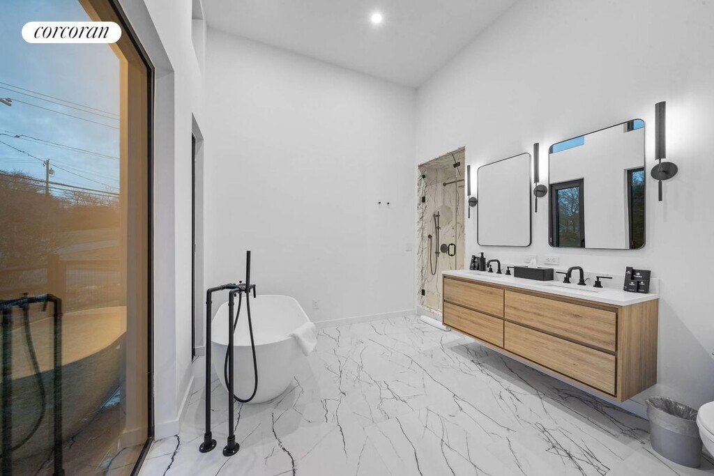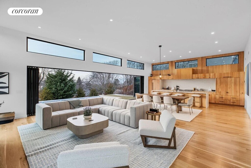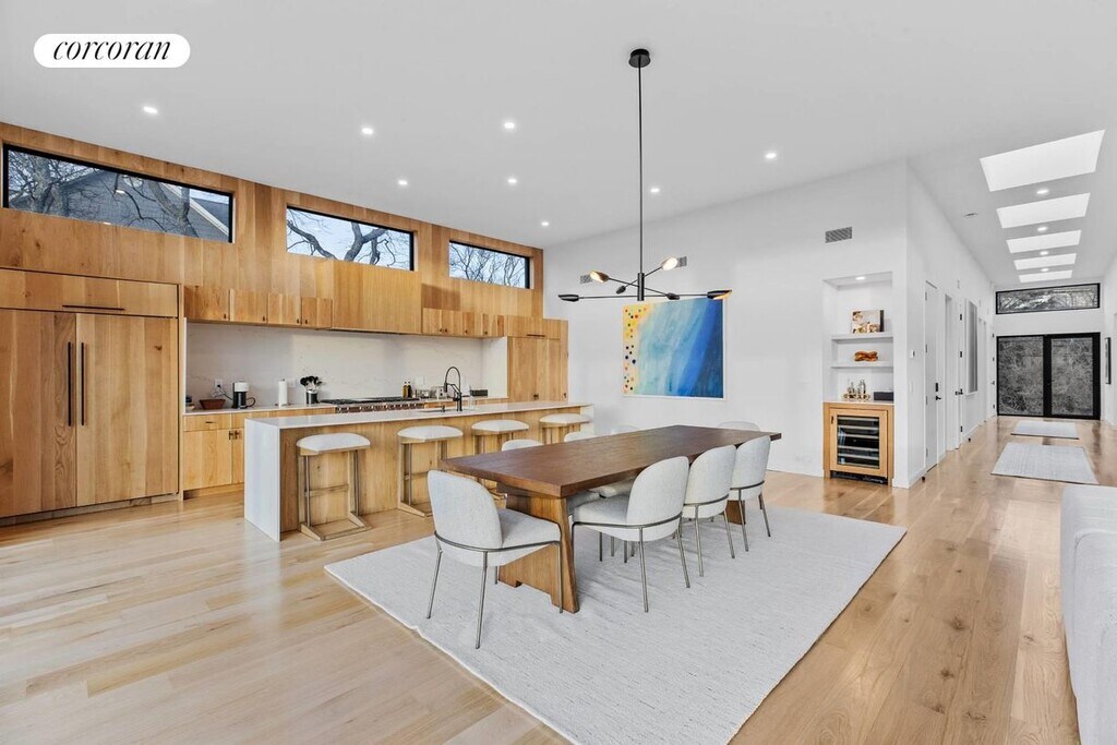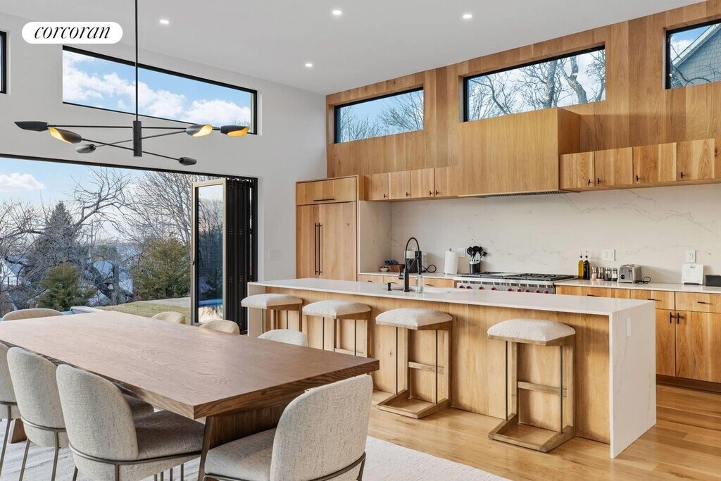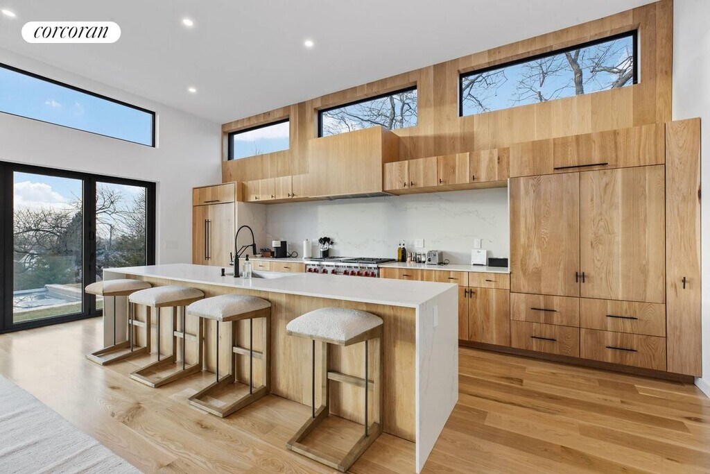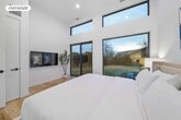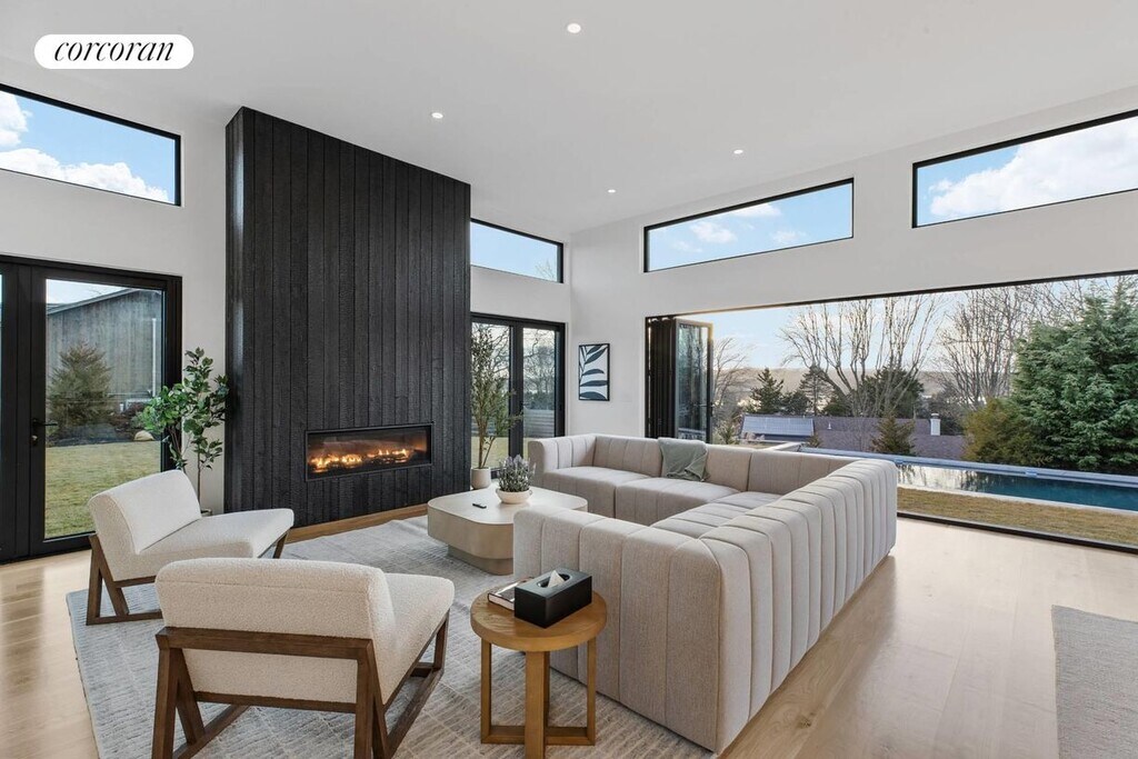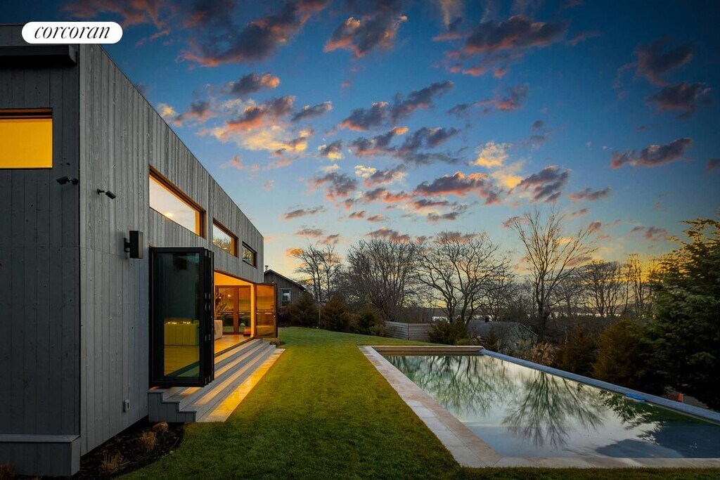 Ideally located just moments from Montauk town, this newly completed single-story, steel-framed smart home offers a refined blend of modern design and exceptional craftsmanship. The striking exterior features vertical Japanese cypress boards finished in light gray alkyd by Nakamoto Forestry. Inside, oversized windows and doors and 12-foot ceilings throughout fill the home with natural light. A dramatic skylit entry hall leads to open living, dining, and kitchen spaces, where expansive bi-fold doors create seamless indoor-outdoor flow. The west-facing backyard is a private retreat featuring a 40' x 17' heated gunite infinity-edge pool with sun shelf along with beautiful landscaping. The chef's kitchen is outfitted with top-tier appliances, a generous pantry, a sleek dry bar with 48-bottle wine refrigerator, and a 12-foot waterfall island ideal for entertaining. An oversized living room with a gas fireplace clad in shou sugi ban Japanese cypress opens to the outdoors through multiple southern-facing doors. The home offers four bedrooms, including three en-suite bedrooms, all with direct access to the backyard. The primary suite features a walk-in closet and spa-like bath with soaking tub, standalone shower, and double vanity. This sophisticated residence delivers a rare blend of architectural elegance, privacy, and proximity to Montauk town, offering an elevated coastal lifestyle at its finest. [[Rental Registration # RR-26-74]]
