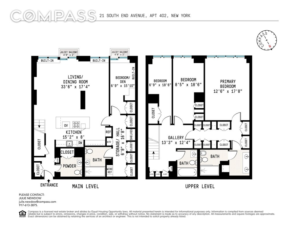 Gorgeous, move-in ready, four-bedroom, three-and-a-half-bath duplex with two Juliet balconies and an open southern exposure, offering sweeping Hudson River and Statue of Liberty views from every room. Located on Battery Park City’s only cul-de-sac, Residence 402 at The Regatta feels quietly removed from the city, with a sense of space and ease from the moment you arrive. The two-level layout feels like a true home, with a natural separation between living and private spaces. On the main level, a living and dining area spanning over 20 feet in width is filled with light from floor-to-ceiling windows and opens to a Juliet balcony. An adjacent office or fourth bedroom has a second Juliet balcony, an Italian-made Murphy bed from Resource Furniture ??with built-in cabinetry, and, with approval, might be incorporated to create an expansive 27-foot-wide entertaining space, if desired. The open kitchen is thoughtfully designed with Bosch stainless steel appliances, a Brazilian tiger-blue matte backsplash, under-cabinet lighting, and an island that comfortably seats four. Storage is abundant throughout, with custom-designed, built-in closets, a Bosch washer and separate dryer, automatic shades, individually controlled split-system HVAC, sleek high-end heating units, and a striking glass staircase connecting the two levels. Upstairs, three bedrooms are well-proportioned and serene. Two share a full bath with a soaking tub, while the primary suite features a separate dressing area and a spacious en-suite bath with dual vanities and a towel warmer. Floor-to-ceiling glass frames uninterrupted views that shift elegantly throughout the day. Wide-plank floors complete the home’s clean, contemporary finish. Often referred to as one of Battery Park City’s hidden gems, The Regatta is a full-service, pet-friendly condominium with a 24-hour doorman, a landscaped courtyard, a roof deck, a bike room, and a live-in resident manager. The esplanade is just outside the front door, with waterfront paths, green space, dining, shopping, and daily conveniences nearby, including Brookfield Place, local markets, and transit options that make the rest of the city easily accessible. Application Processing Fee (Non-Refundable) $650.00 Tenant Condo Application Fee (non-refundable) $350.00 Tenant credit check fee (non-refundable) $250.00/per applicant Single-Application Initiation Fee $120.00 Digital Submission Fee $65.00 Building Fees App Admin Fee 5% of Total (excluding Digital Submission & Initiation Fees)