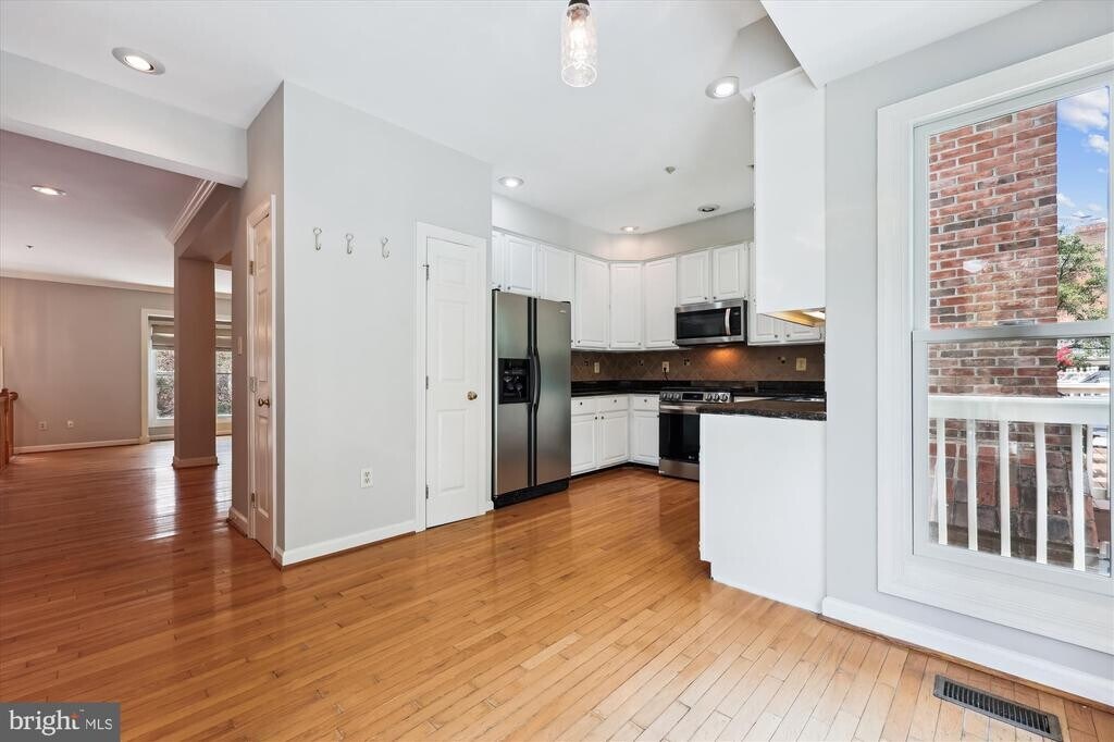 The home is fully available! WELCOME TO THIS STUNNING 4-LEVEL LUXURY TOWNHOUSE THAT MASTERFULLY BLENDS ELEGANCE, COMFORT AND MODERN DESIGN! With 3 spacious bedrooms, 2 full and 2 half baths, and exceptional living spaces throughout, this home offers over 2600 sq ft of refined living. The expansive living and dining area is adorned with crown molding, gorgeous hard floors, and a charming bay bump-put window that floods the space with natural light. This gorgeous home also features a gourmet kitchen with 42 inch cabinetry, gleaming granite counter, newer stainless steel appliances and recessed lighting. A remodeled half bath is also included on this level. Step outside to a private trex deck which is perfect for outdoor entertaining! Soaring 9 ft ceilings enhance the openness of the main level, while the finished walkout basement provides an inviting lower level of space complete with a cozy fireplace, half bath and entry to your private patio overlooking tranquil, wooded views. The showstopping owner's suite features a dramatic vaulted ceiling, a generous walk-in closet and a luxurious en suite bathroom with a jacuzzi tub, a seamless glass shower and dual vanities. Two additional spacious bedrooms and a separate guest bathroom complete the 3rd level. At the top of it all, the 4th-level loft adds a unique touch - offering 2 newer Velux skylights, built-in shelving, and its own gas fireplace, making it ideal as a home office, library, or creative retreat. Additional highlights include a 2 CAR GARAGE with separate storage room, newer washer and dryer, recessed lighting, HARDWOOD FLOORS on all 4 LEVELS, hot water heater-2025, newer windows and doors are less than 5 years old, custom fiber glass entry door with storm door and the entire home is freshly painted. This home truly has it all - luxury, space, and a peaceful natural setting. LOCATION IS EVERYTHING - and this home has it all. Ideally situated just minutes from premier shopping centers, restaurants, (Walk to downtown Crown which has everything you could possibly need), parks, golf, metro, ICC and everyday conveniences and major commuting routes. WELCOME HOME!
