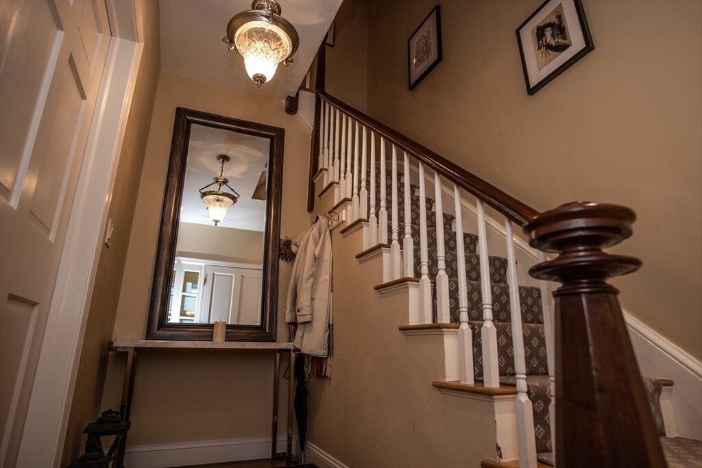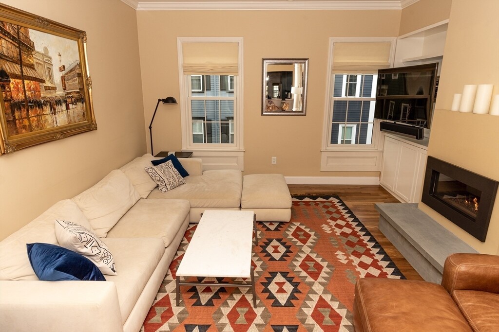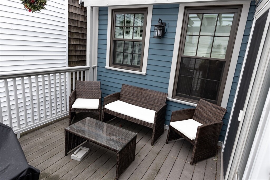 A rare furnished rental offering just steps from Monument Square. This expansive,beautifully renovated 4-bedroom,3-bath townhouse offers over 2,400 square feet of thoughtfully designed living space with dedicated parking. The chef’s kitchen is a standout,featuring stainless steel appliances,custom blue cabinetry,tin ceiling,quartz countertops and island,and direct access to a generous deck—perfect for unwinding or casual entertaining. The second level includes a spacious dining room,an inviting living room with gas fireplace,a flex office space and full bath. The upper-level features three bedrooms,including a spacious primary suite with two oversized custom closets and a well-appointed en-suite bath. Downstairs,the first floor offers an oversized family room with its own kitchen,ideal for entertaining,along with a nicely sized bedroom and full bath—perfect for an au pair,in-law,or guest suite. A truly special opportunity in a prime location. MLS# 73475195